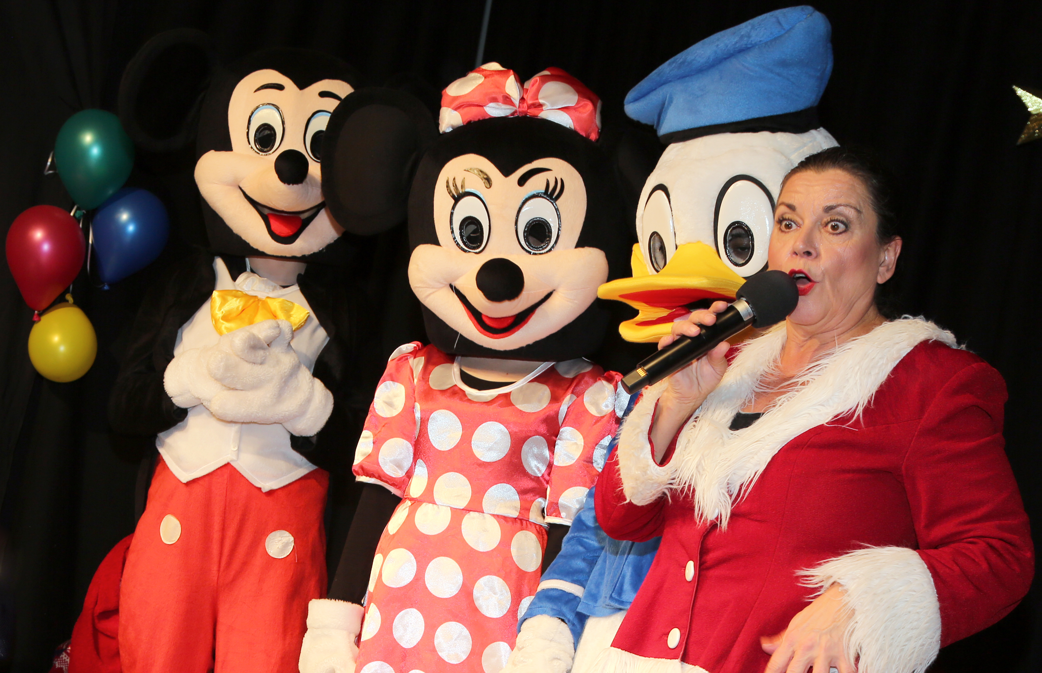 SPESIELLE VENNER: Jenny Jenssen tok med seg blant andre Mikke Mus, Minnie Mus og Donald Duck til låven på Årvoll gård for å skape skikkelig julestemning. FOTO: Rolf E. WulffBilde 1 av 27