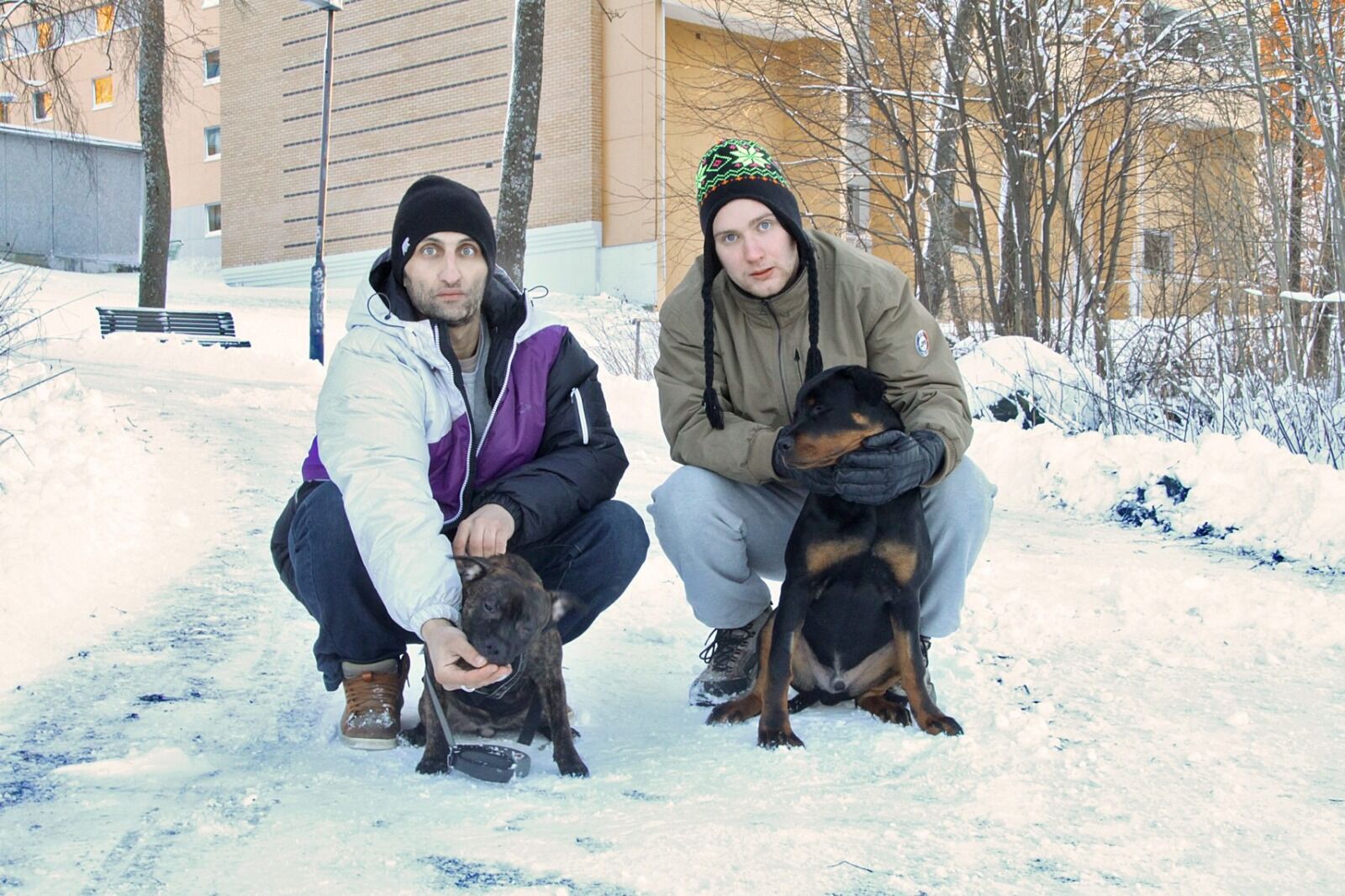 Deler Amiri og Alex Gorski fra Trosterud er nær ved å bli påkjørt hver dag når de er ute og lufter hundene sine. Nå frykter de en ulykke dersom ikke politiet eller kommunen løser problemet på gangveien.