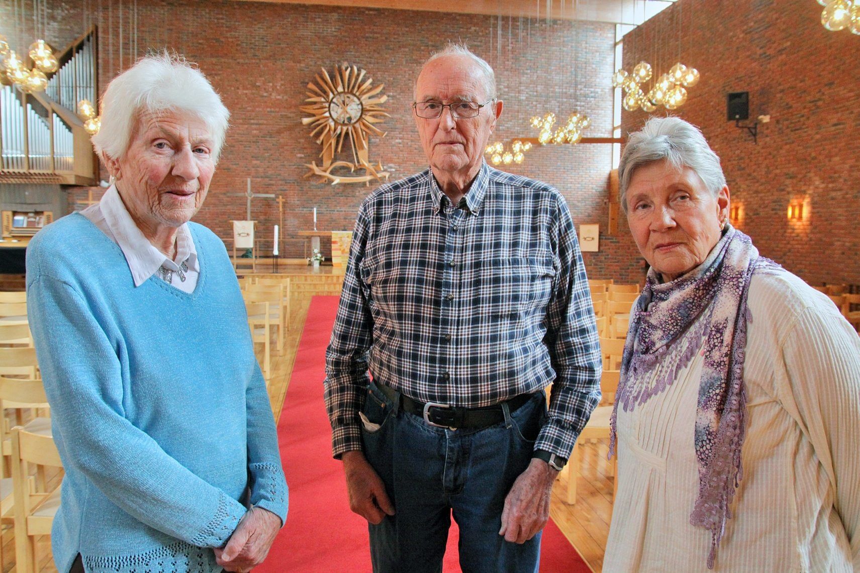 Bredtvet kirke rommer mye, men selve kirkerommet er stoltheten. Gudrun Berg, Knut Skarvang og Randi Fuglesang står og ser seg rundt i det store rommet. De tre er enige om at de ikke vil miste kirken.