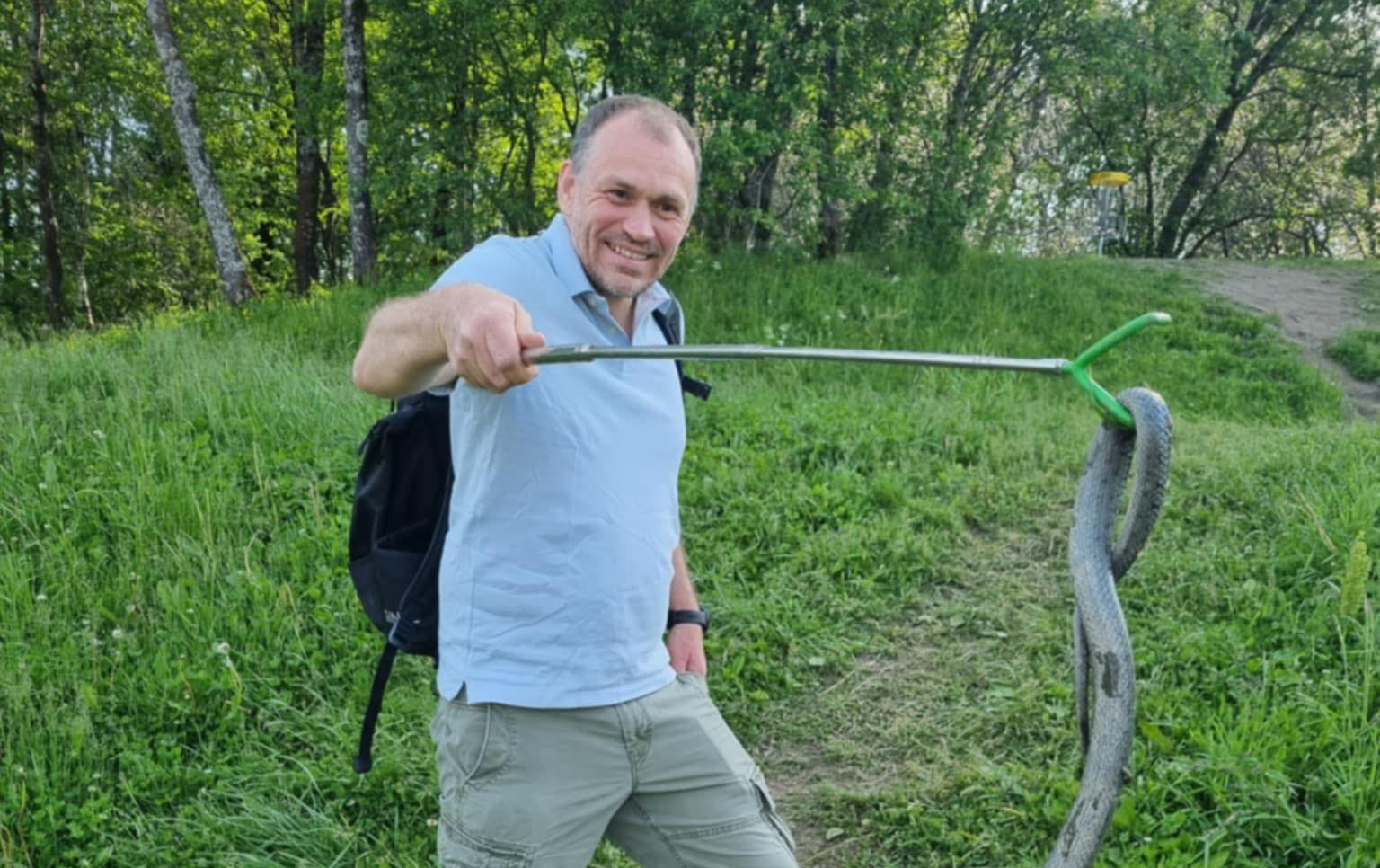Stovner diskgolfbane er kjent som en teknisk og utfordrende bane. Men store slanger er normalt ikke en del av det som gjør banen vanskelig!