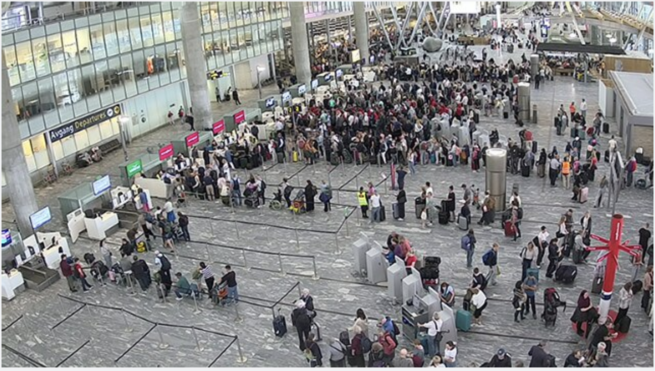 Overvåkningsbilder fra Avinor viser at det like før klokka 11 fortsatt er lange køer ved innsjekking. Det er særlig reisende med Norwegian som rammes av feilen. De henvises inntil videre til manuell innsjekk. Reiser man med SAS eller andre flyselskap henviser Avinor til område 5-10.