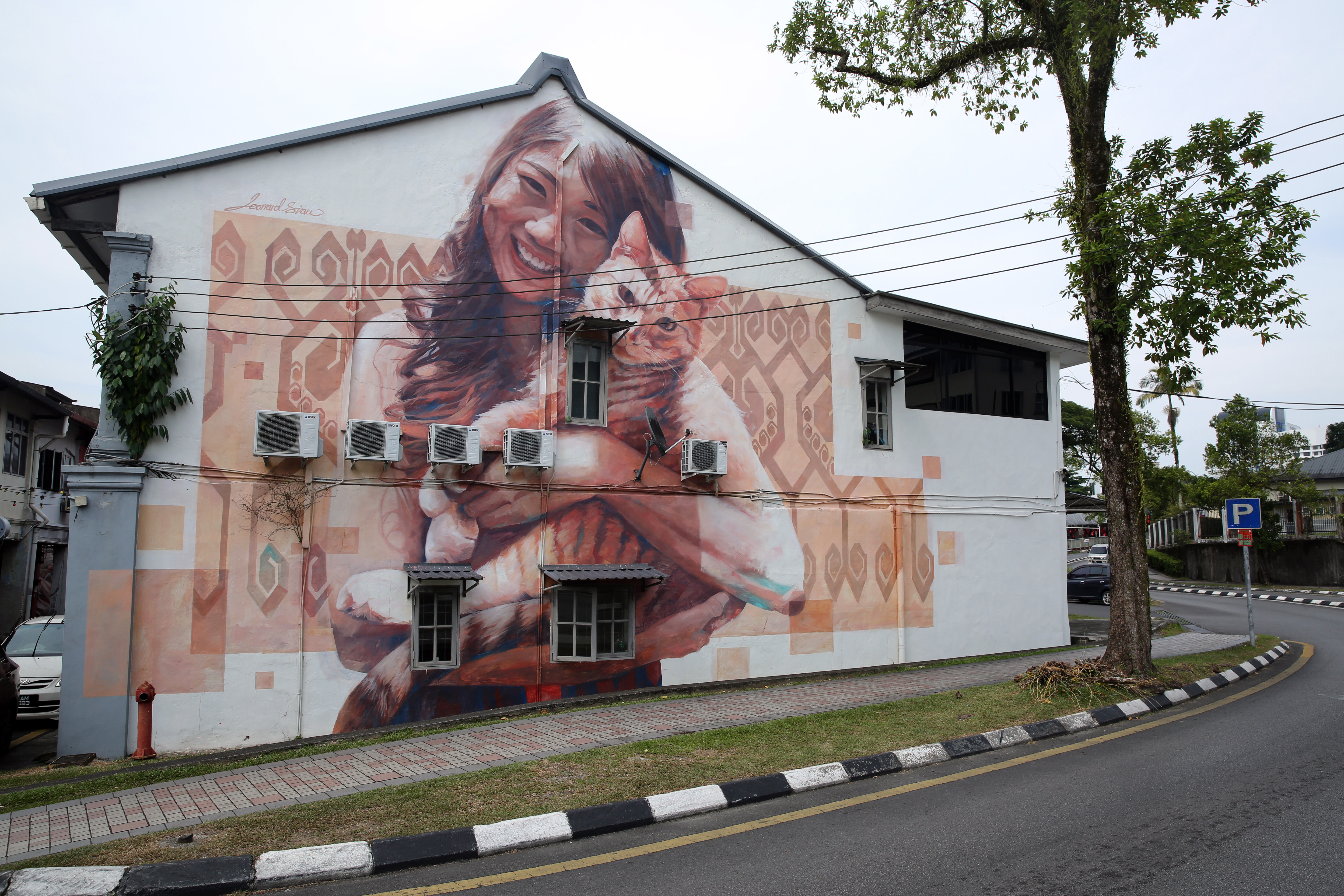 Vandrende forbi de gamle kinesiske varehusene som ligger langsmed elva som renner gjennom Kuching er det ikke bare katter i hus, hjem og på gatene – du finner også mange veggmalerier. Flere restauranter har katt i navnet, og selvsagt bugner det av kattesouvenirer. For ikke å snakke om kattestatuer. Midt i byens byens mest travle rundkjøring som er omkranset av store internasjonale hoteller, står en gigantisk statue av en kattefamilie. Det er det mest fotograferte «monumentet» i Sarawak.