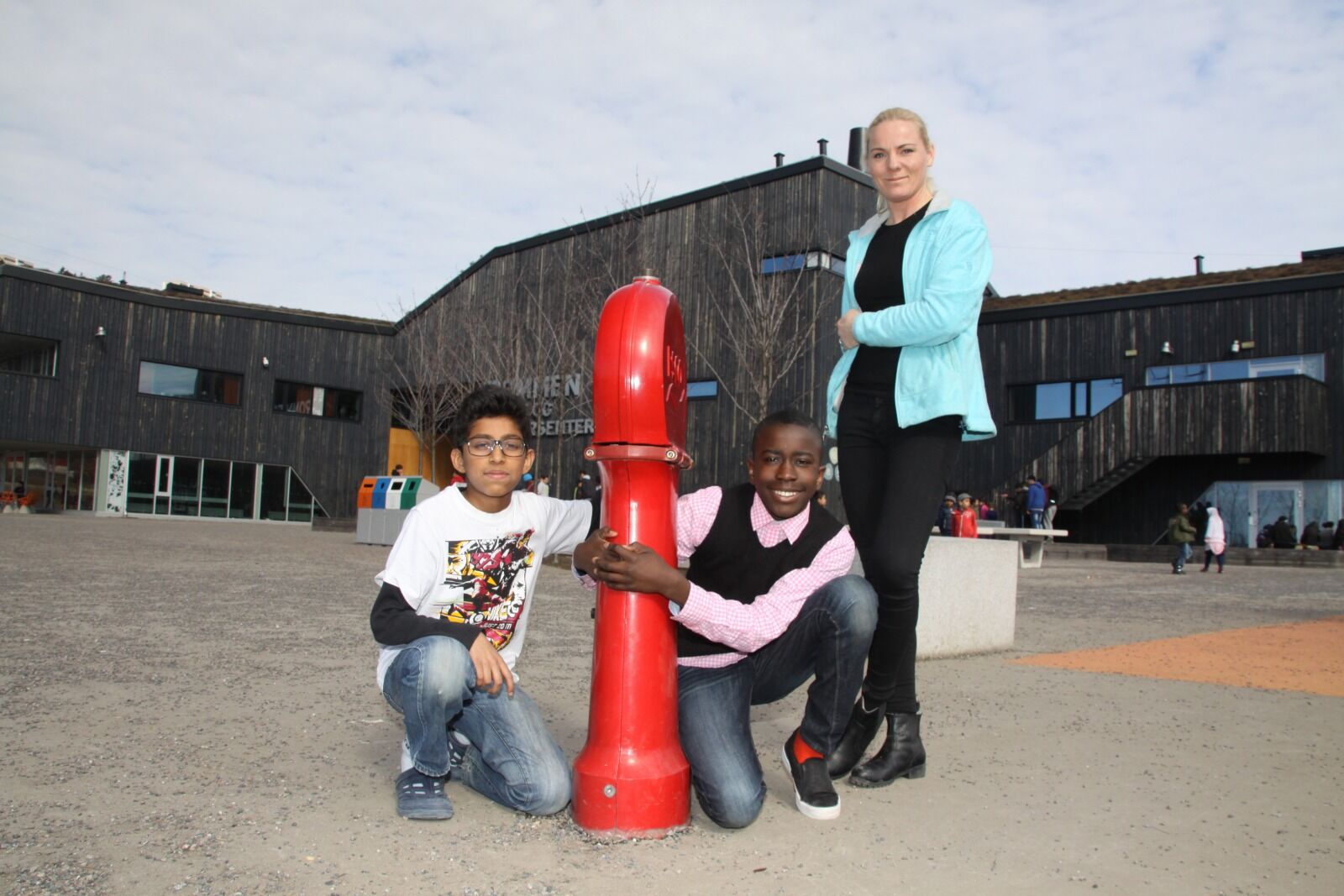 Klassekameratene Adchay Poornanandan (12) og Favour Okeke (12) er blant elevene på syvendetrinn som nå får boltre seg i skolegården når de skal løse matteoppgaver.