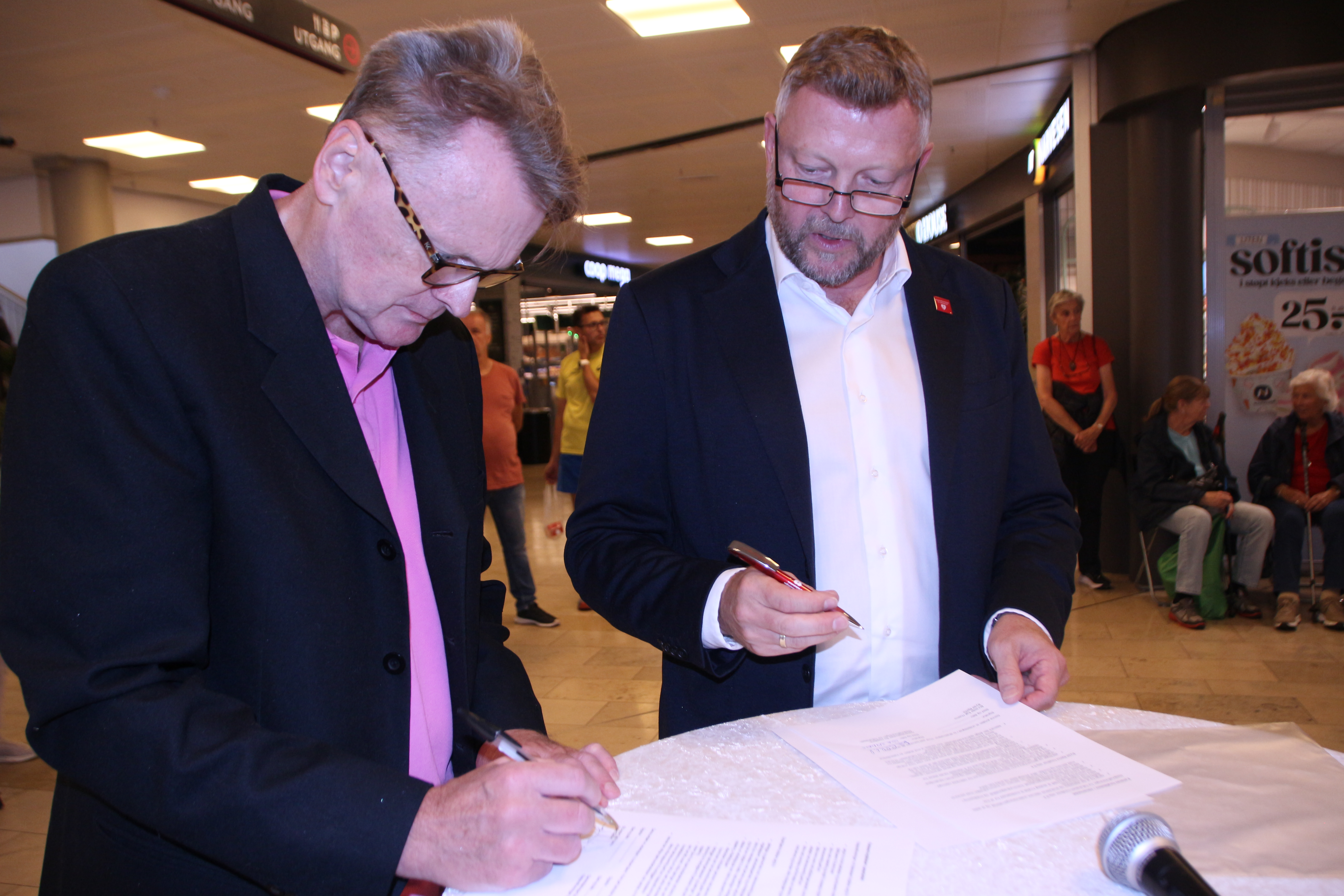 SIGNERTE AVTALE: Leder i Bjerke bydelsutvalg, Egil Husmo (H) og generalsekretær i Nasjonalforeningen for folkehelsen, Bo Gleditsch, skrev fredag under samarbeidsavtalen. FOTO: Martine Myhre Shurdhiqi