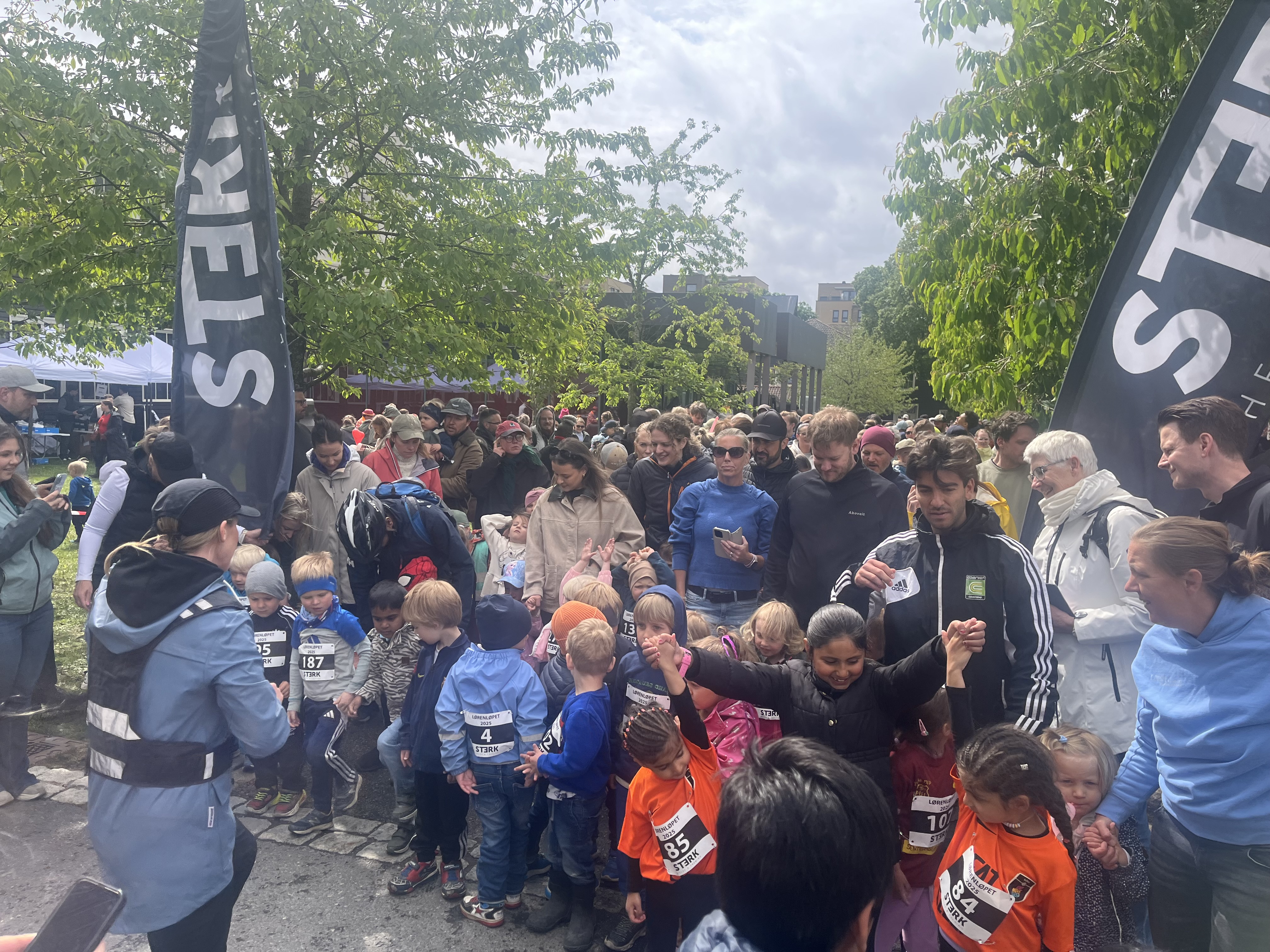 IVRIGE BARN PÅ STARTSTREKEN: Spente barn gjør seg klare til å løpe, godt støttet av foreldre og frivillige. STYRK-flagget vaiet over et yrende folkeliv på Løren.Bilde 1 av 3