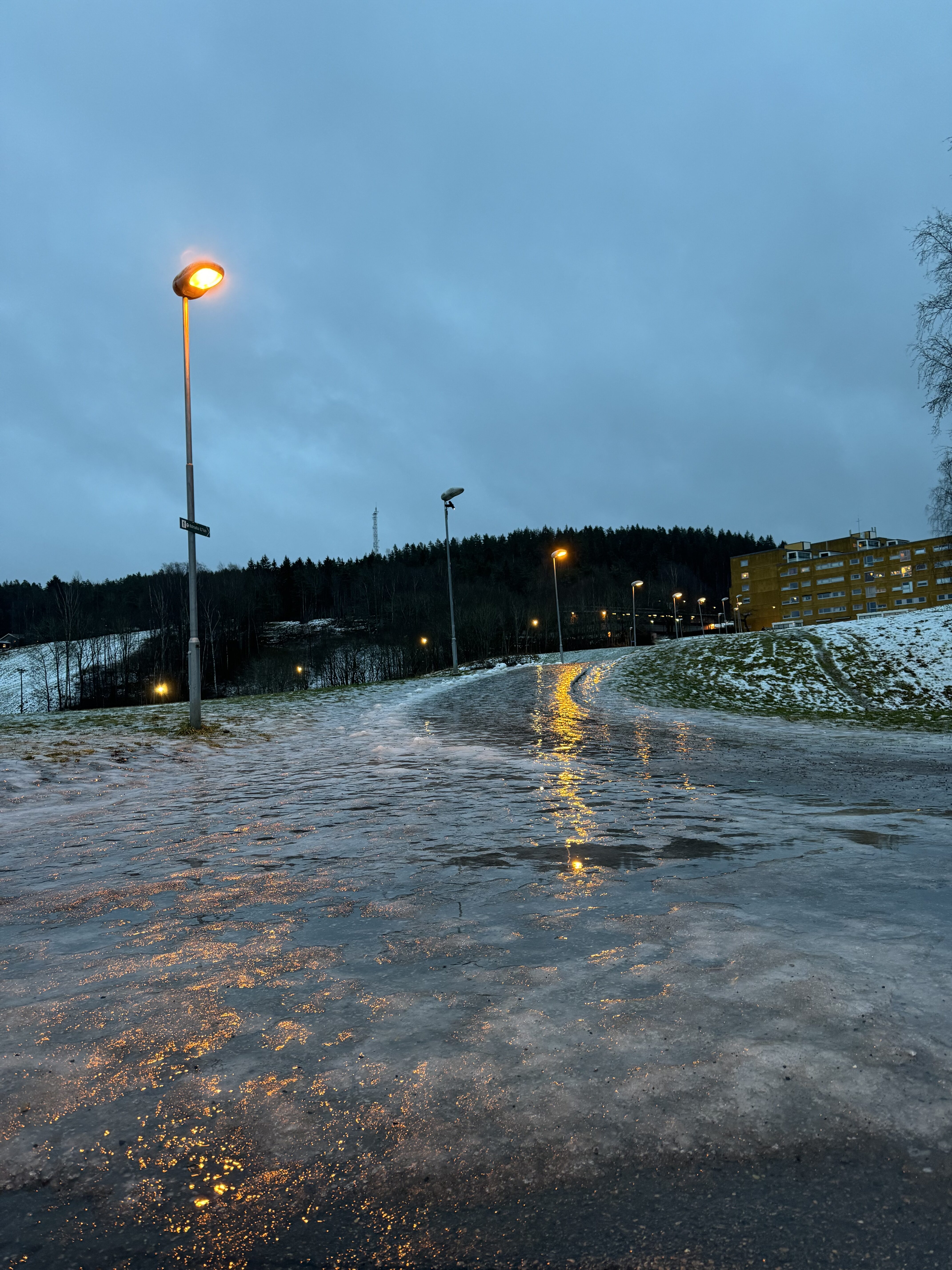 Hold deg godt fast der du kan i dag. På Grorud t-banestasjon er ikke det noe problem. (Foto: Magnus Miland Vold)