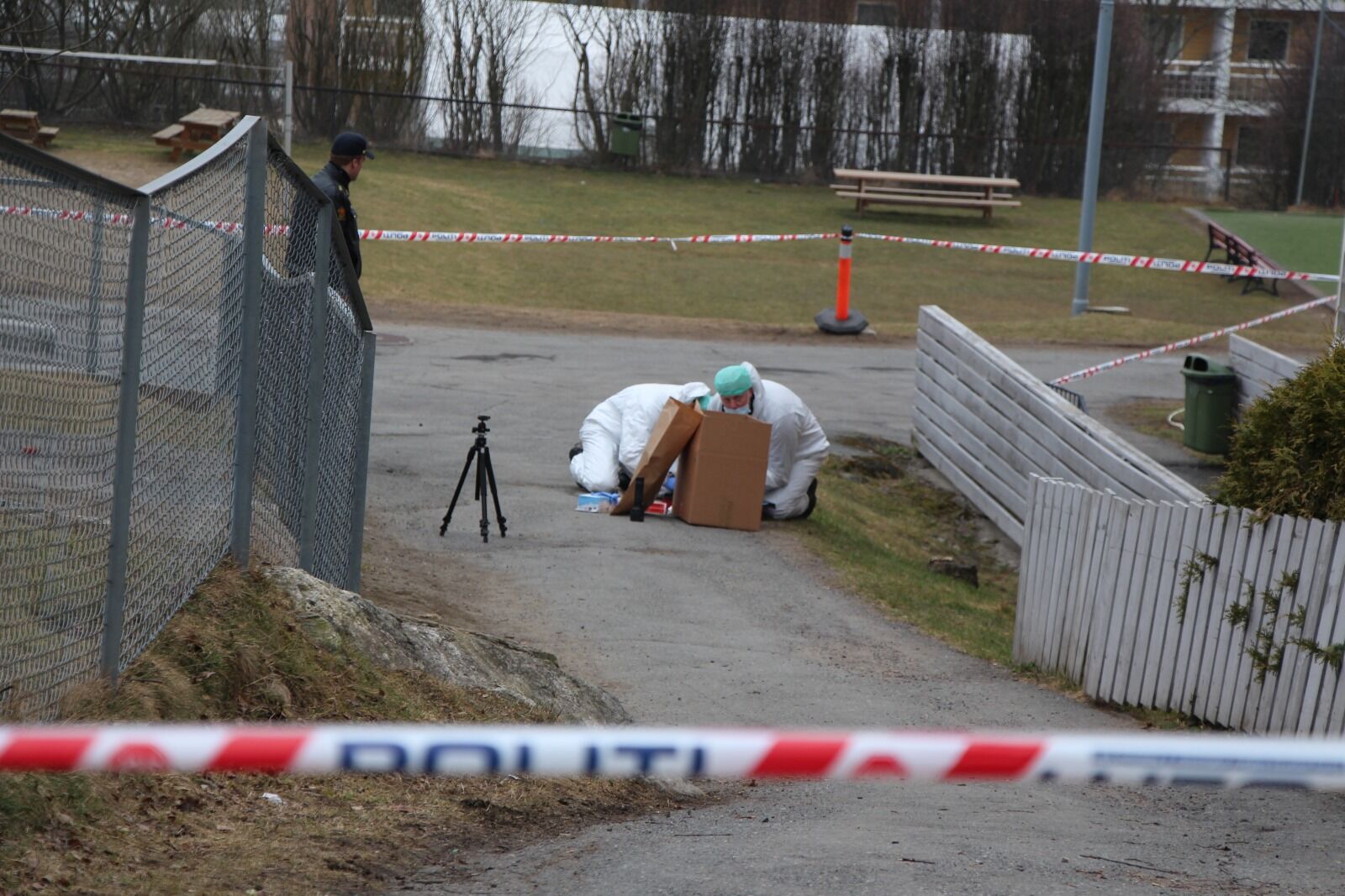 SIKRER BEVIS: Kriminalteknikere kom til åstedet lørdag formiddag. Drapsvåpenet ble funnet i gresset til høyre. Foto:Bilde 1 av 3For å se disse bildene må du ha et abonnementFor å se disse bildene må du ha et abonnement Mann funnet drept ved Lindeberg skole Caroline Bremer Publisert 11. apr 15 kl. 07:36 Del på sosiale medier Del Facebook Twitter E-post Abonnement