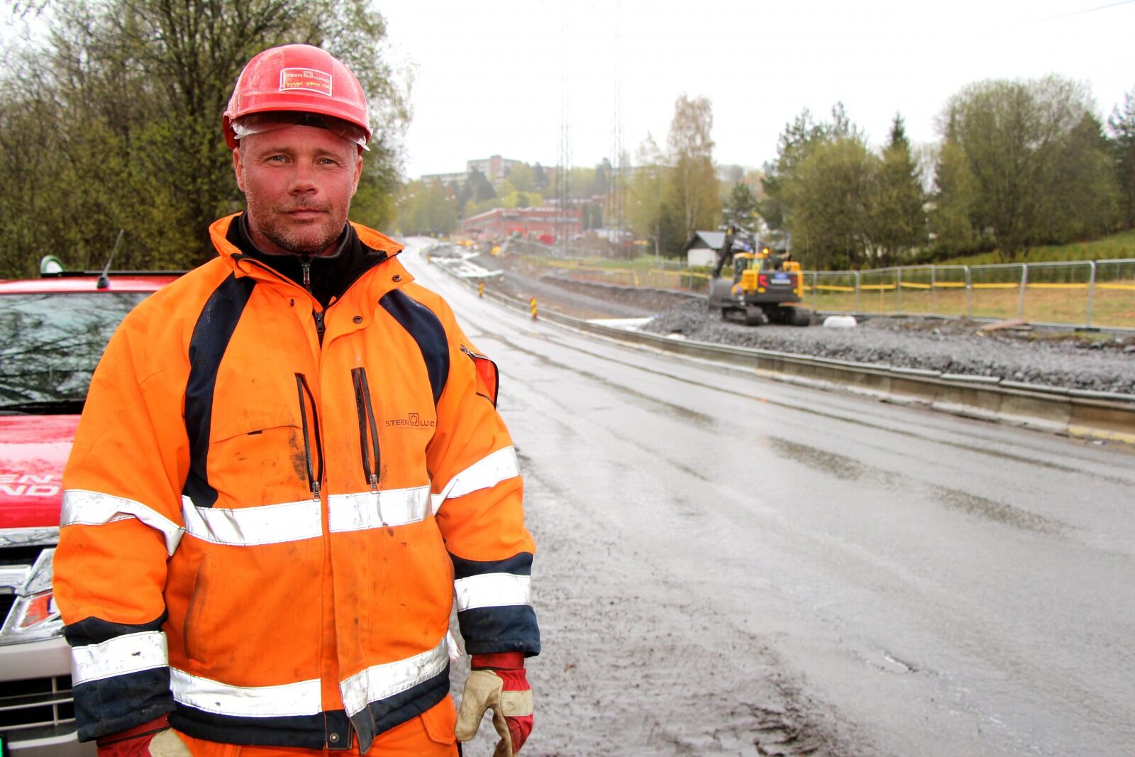 BYGGER LANGS VEIEN: Anleggssjef Peter Kilberg i Steen og Lund forteller at det bygges en gang- og sykkevei i Maria Dehlis vei og at de måtte flytte strømkablene to meter. Foto:Bilde 1 av 1