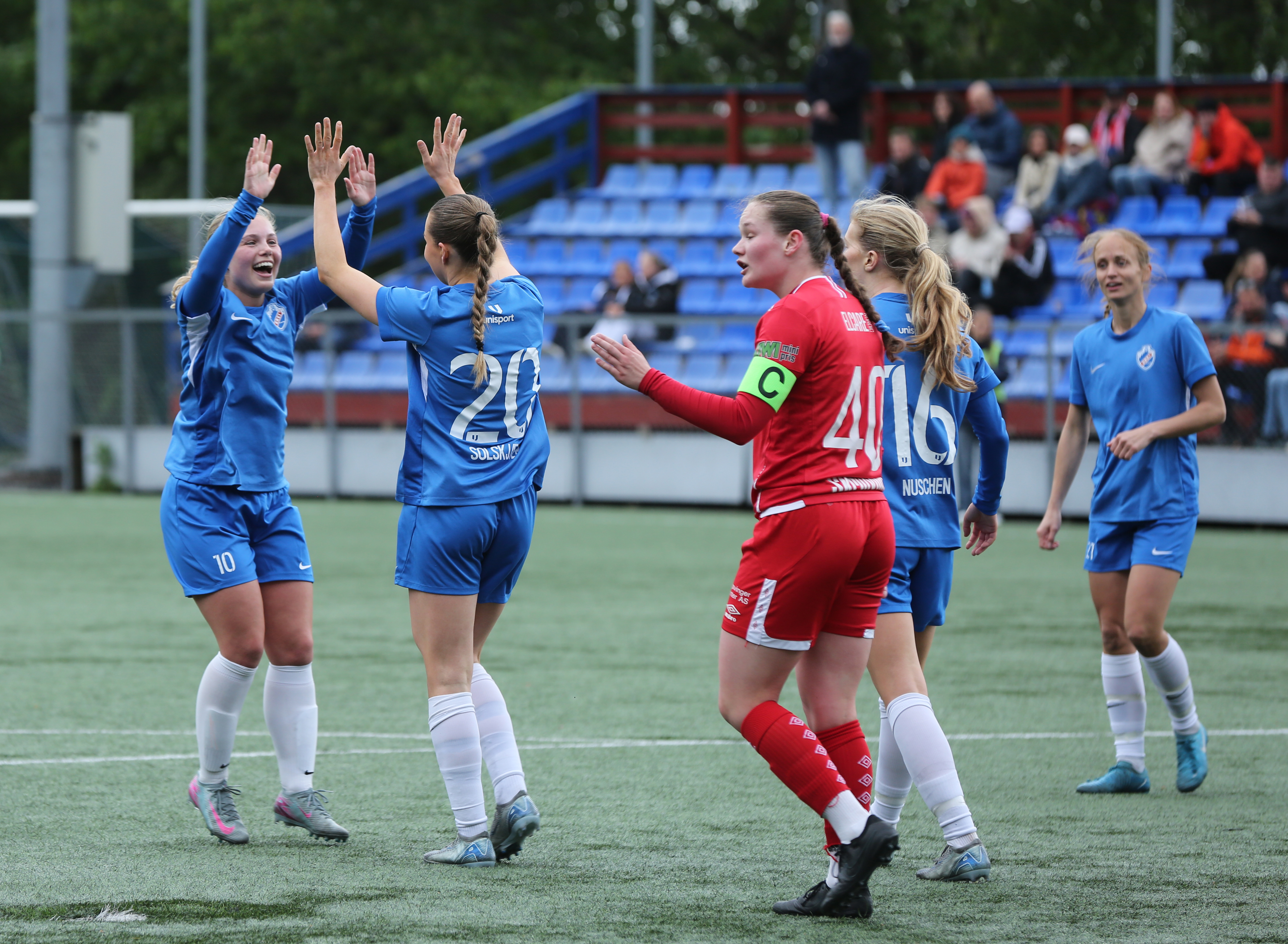 TIDLIG JUBEL: Julie Kristine Solskjær og Lotte Fikseth Fossem jubler etter 1-0 målet. De ble Greis målscorere i 2-2 kampen - men det hadde vært mer å juble for hvis laget hadde satt de store sjansene de hadde i løpet av kampen. FOTO: Rolf E. WulffBilde 1 av 9