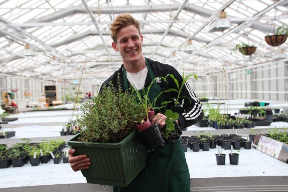 GRØNT GLIS: Emil Sørum er blant de ivrige frivillige som driver Dr. Dedichens drivhus, og da har man absolutt nok å holde fingrene i. Foto:Bilde 1 av 5
