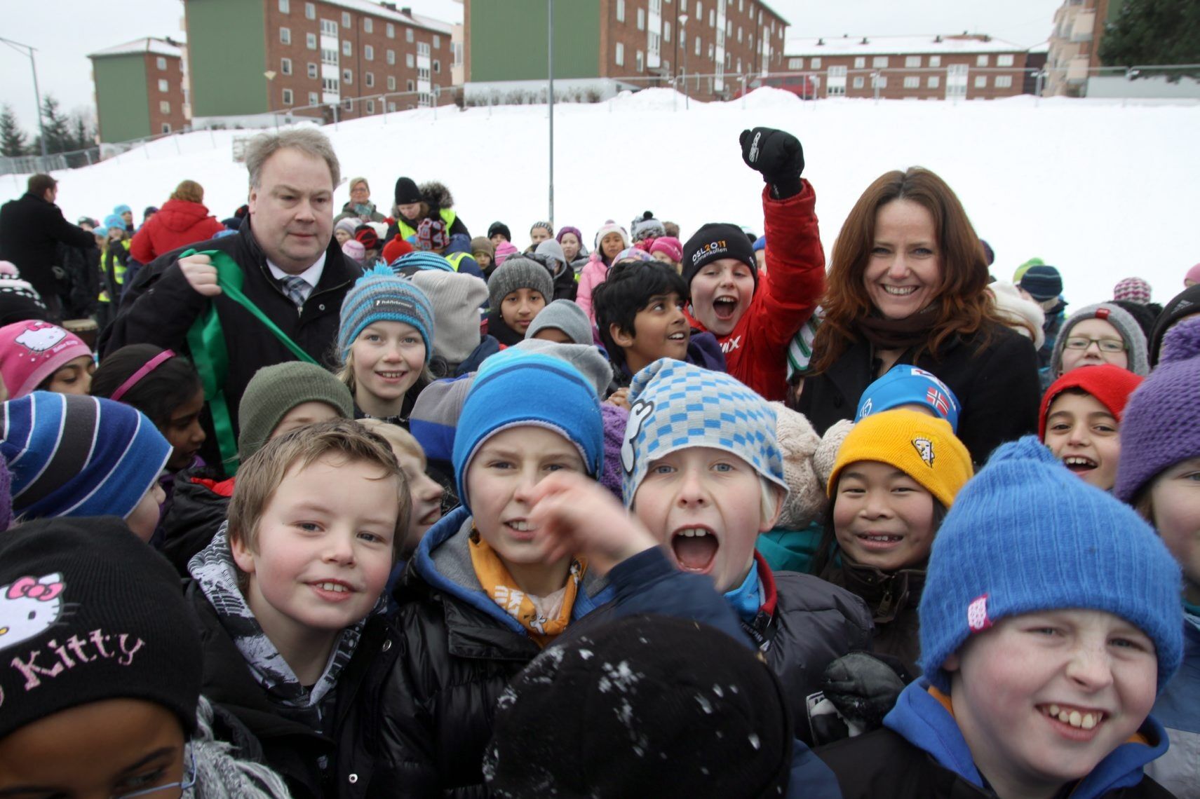 «Alle» ville være med på bilde da Bård Folke Fredriksen og Heidi Sørensen markerte at første etappe av å realisere Bjerkedalen park – å åpne Hovinbekken – er i gang.