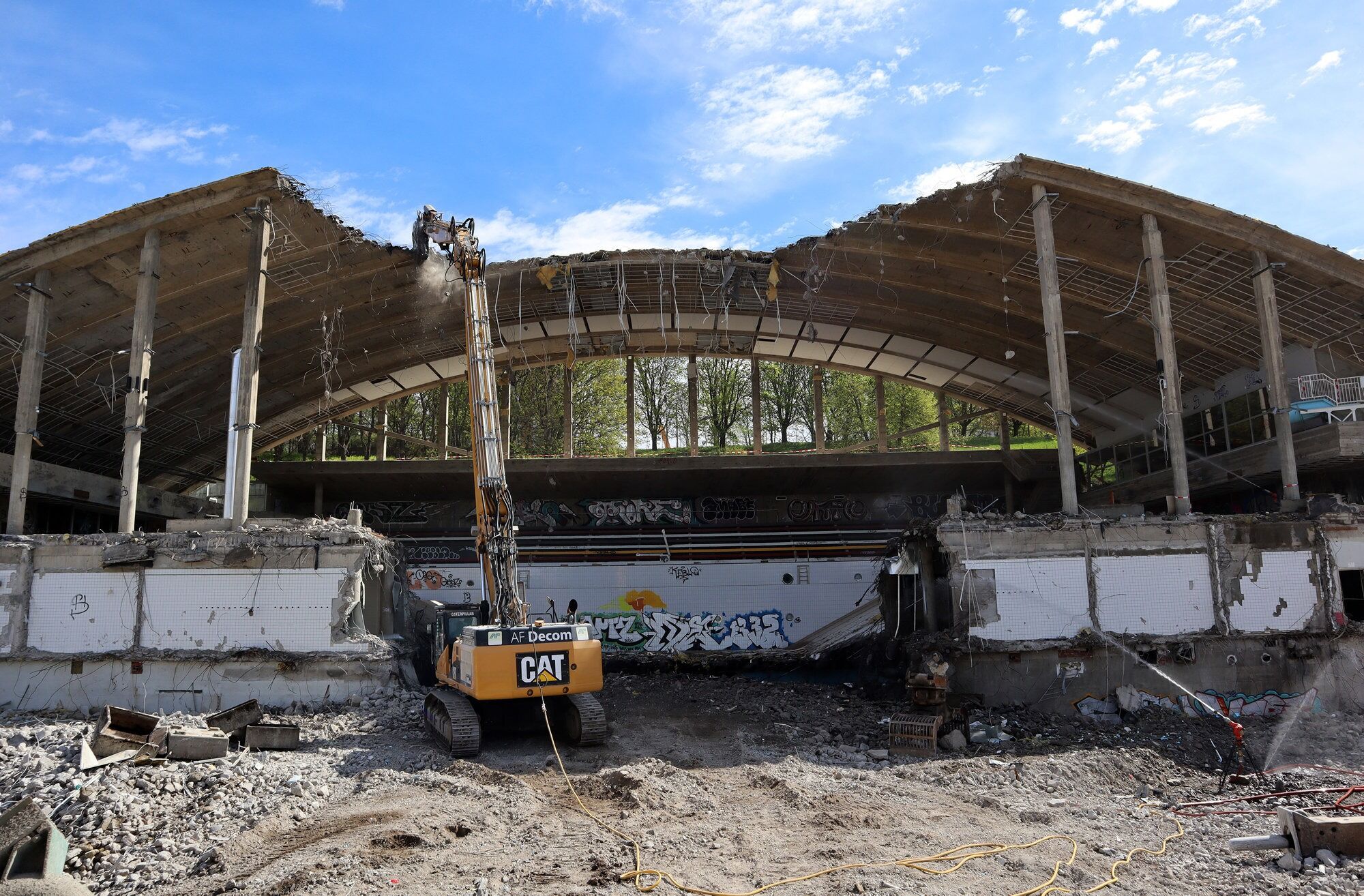 Som kjent skal Oslos mest kjente badeanlegg jevnes med jorden for å gjøre plass til det nye Tøyebadet. Arbeidet er allerede godt i gang, og nå har også den karakteristiske takbuen takket for seg.