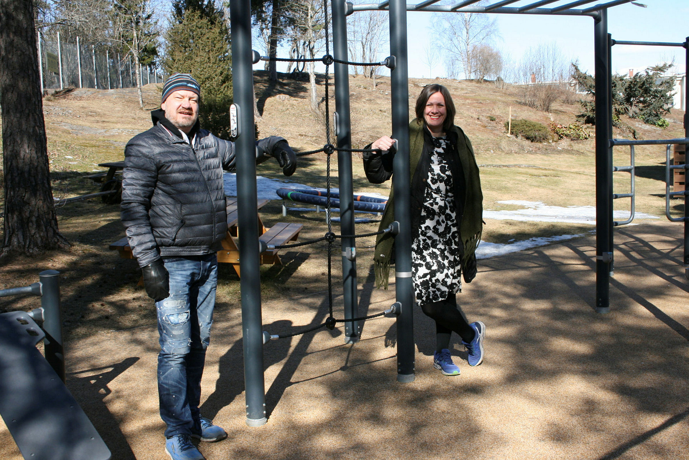 NÅ KAN DU SØKE: Søknadsfristen for å få bomiljøtilskudd går ut 15. april. BU-leder i Bydel Bjerke, Lars Erik Fuglesang (Ap, t.v.), og byråd for byutvikling Hanna Marcussen (MDG) håper at så mange som mulig benytter muligheten til å gjøre sitt nærmiljø mer inkluderende og hyggelig. Foto: Caroline HammerBilde 1 av 3