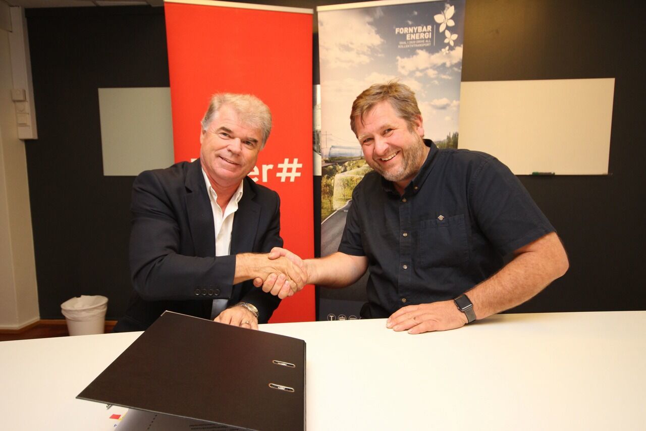 AVTALE: Viseadministrerende direktør i Unibuss, Kjell Knarbakk (f.v.), er enig med Ruter-sjef Bernt Reitan Jenssen om en miljøovergang for bussrutene i Indre Oslo by. (Foto: Øystein Dahl Johansen/Ruter) Foto:Bilde 1 av 1 Stø kurs mot klimamålet: Nå kommer el-bussene Elisabeth T. Faane Publisert 14. jul 16 kl. 17:00 Del på sosiale medier Del Facebook Twitter E-post Abonnement