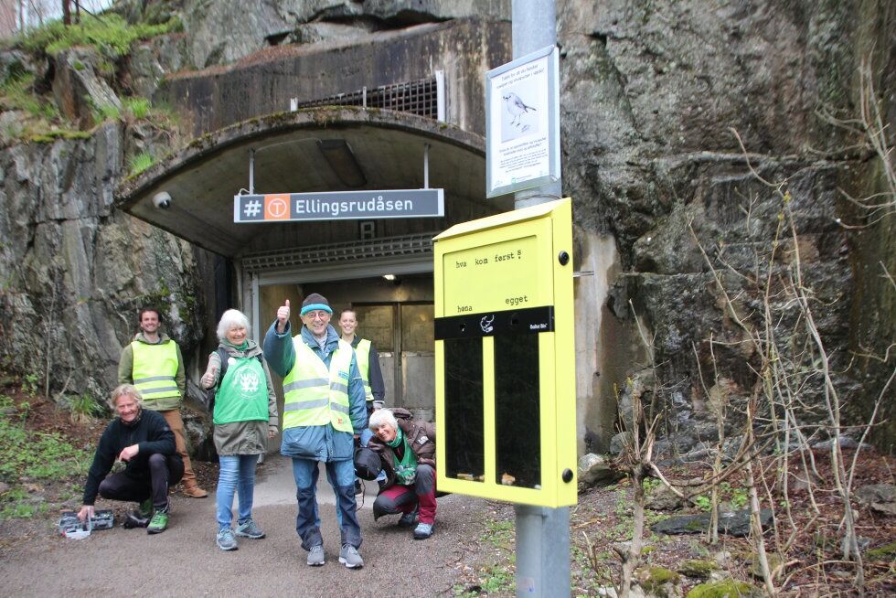 To kasser til å kaste sigarettsneiper og snusputer i er nå etablert ved Ellingsrudåsen t-banestasjon. Og plakater med vinnertegningen i konkurransen «Snus- & sneipfritt nabolag» er å se på både vegger og stolper i området.