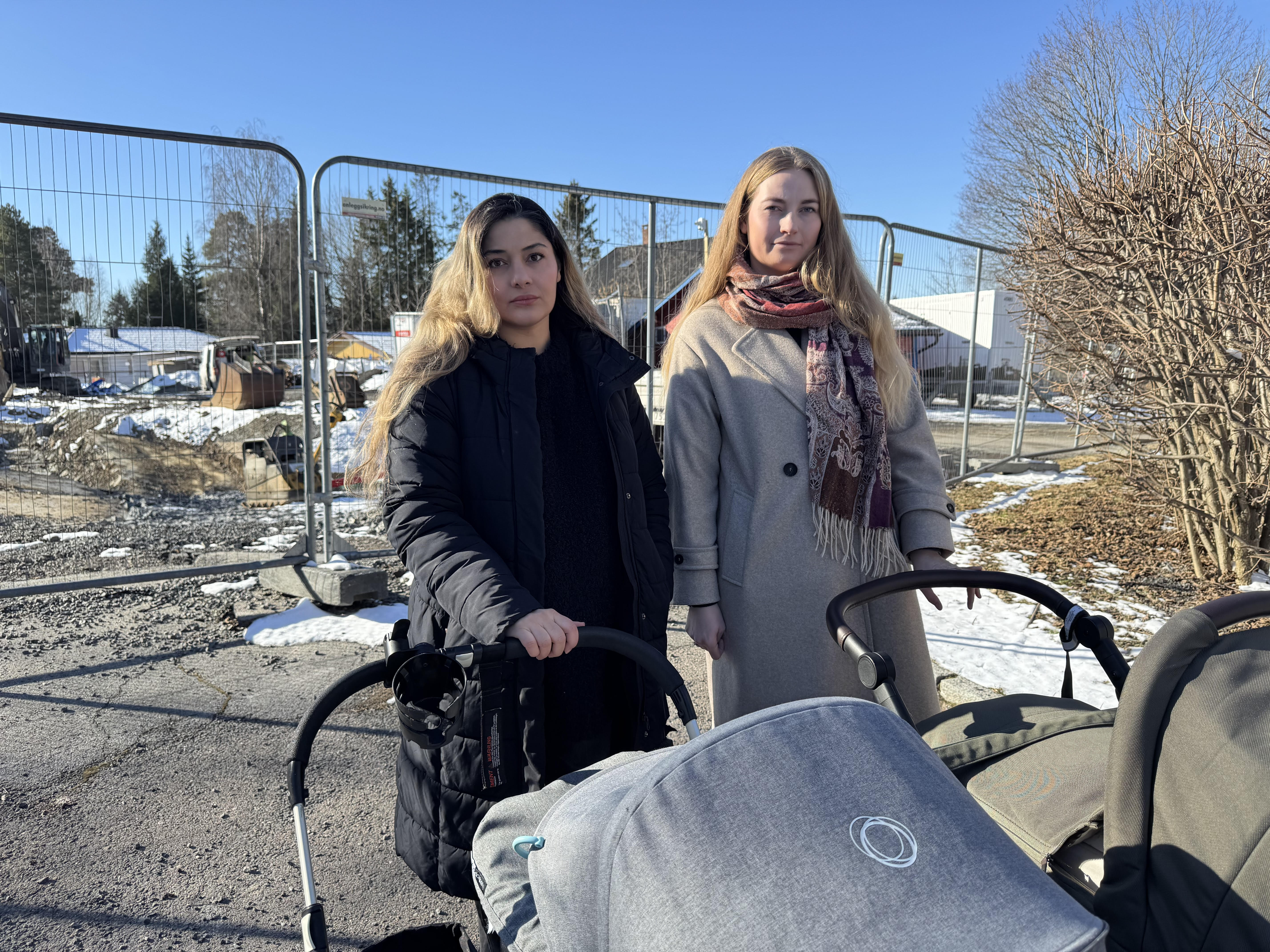 HAUGERUD: Arbeidet har blitt forsinket, til frustrasjon for både barn og foresatte, men nå - på tross av en byggeplass som vitner om noe annet - nærmer en ferdigstillelse seg. Her med Noor Asaad (t.v) og Aurora Solheim.Bilde 1 av 2