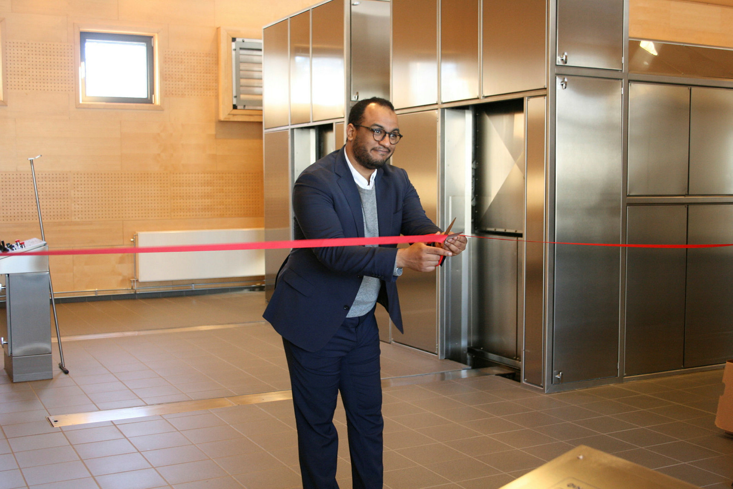 OFFISIELT ÅPENT: Byråd Omar Samy Gamal (SV) fikk æren av å kutte snoren og åpne det oppgraderte krematoriet på Alfaset offisielt mandag. Foto: Caroline HammerBilde 1 av 1