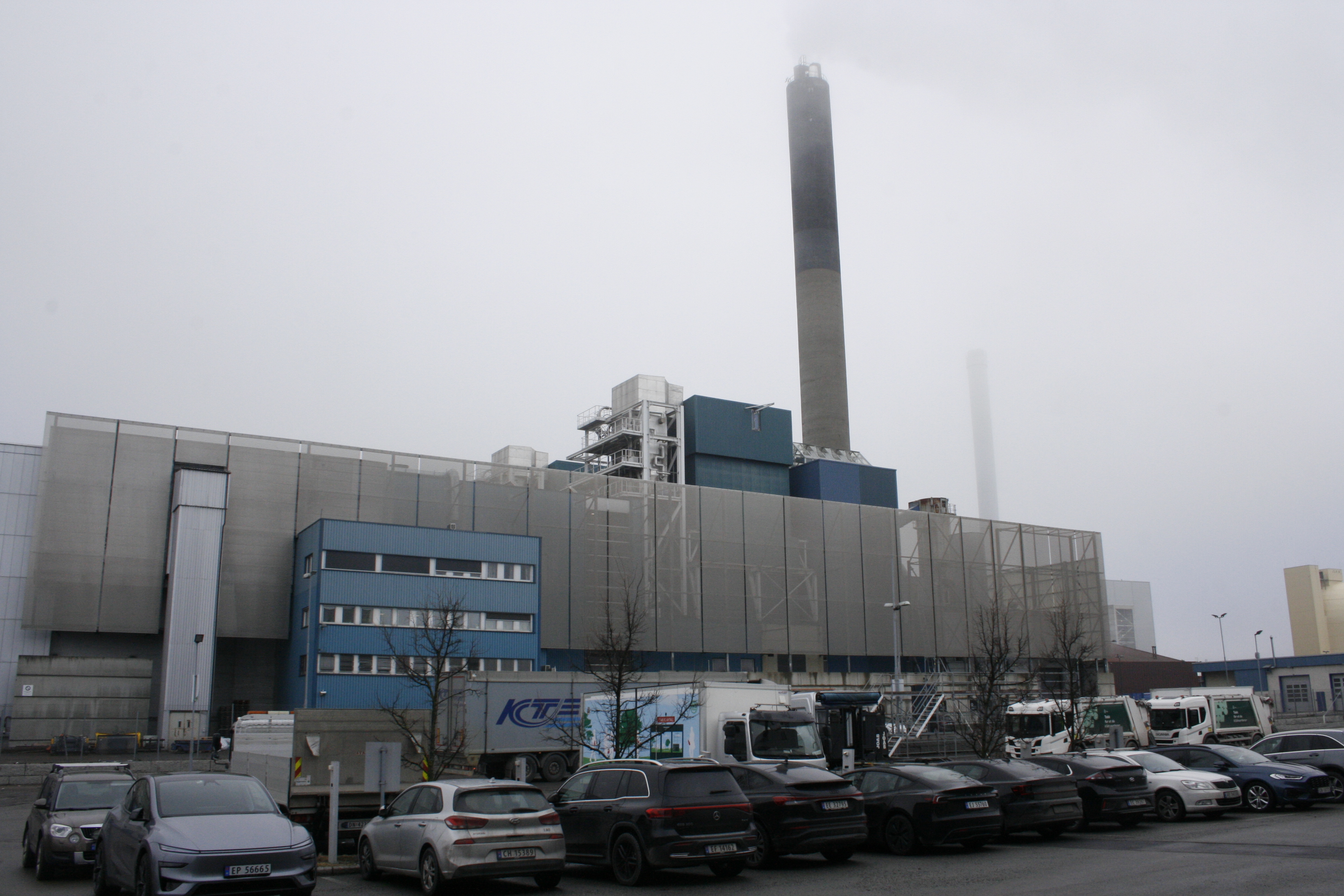 BLIR KALD: Den fremste pipa, som er grå og svart, slukkes i 2029. Den bakre pipa, som kan skimtes i tåka, tilhører Hafslund Celsio. Der vil anlegget fortsette driften. FOTO: Caroline Hammer