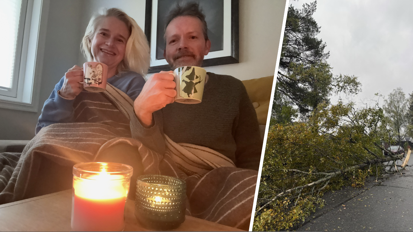 Nina og Lars Erik må inntil videre klare seg med pledd og stearinlys for å holde varmen – men da naboen stilte opp med gass og vedovn, kom kaffen endelig på plass.
