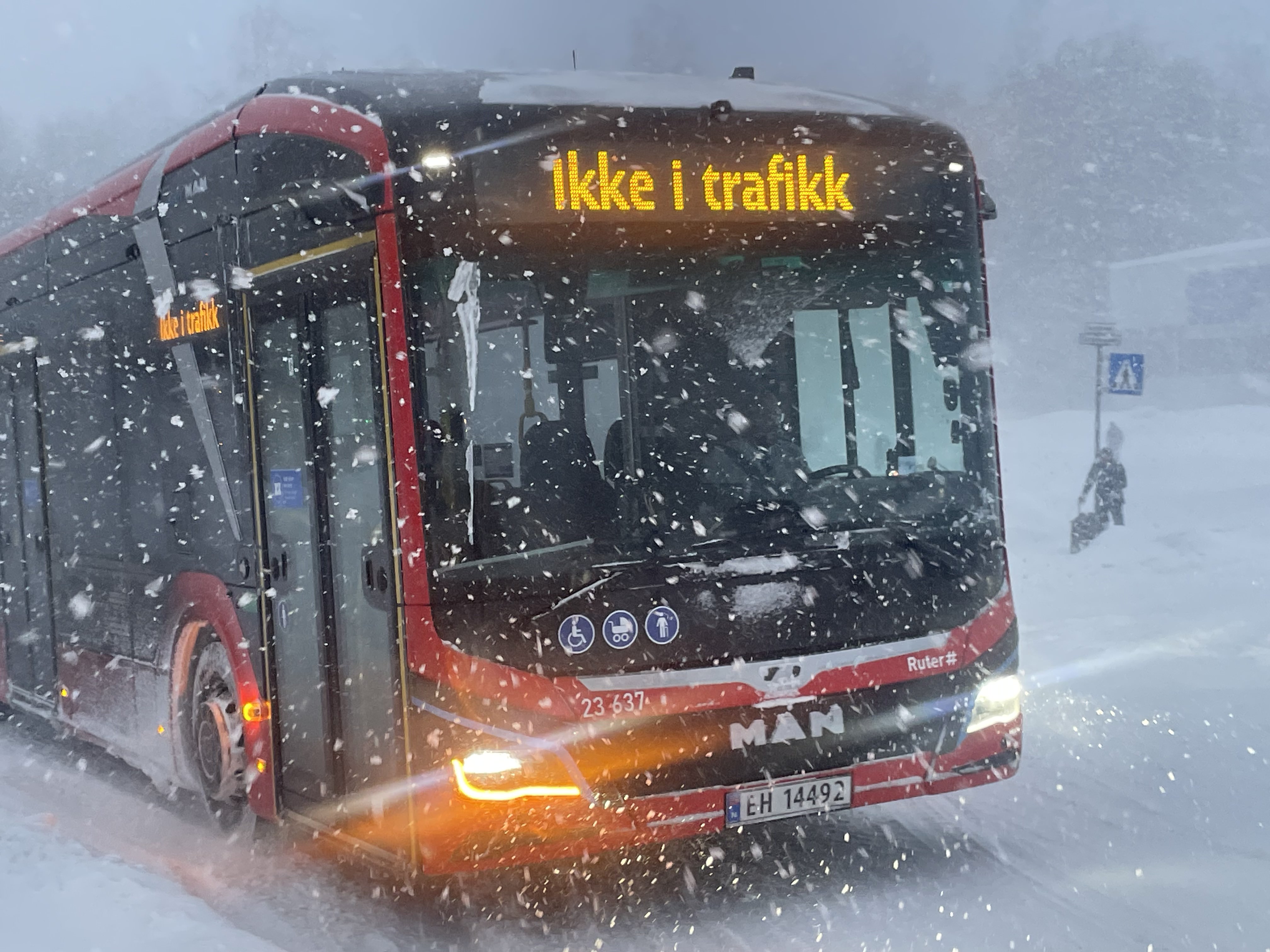 Ruter har tidligere i kveld sendt ut en pressemelding der de påpeker usikkerheten for kollektivtrafikken. Slik det ser ut i kveld så vil trikk og T-bane kunne gå som normalt, men at det er risiko for innstillinger og forsinkelser. Det er stor usikkerhet knyttet til busstrafikken på grunn fare for svært glatte veier.