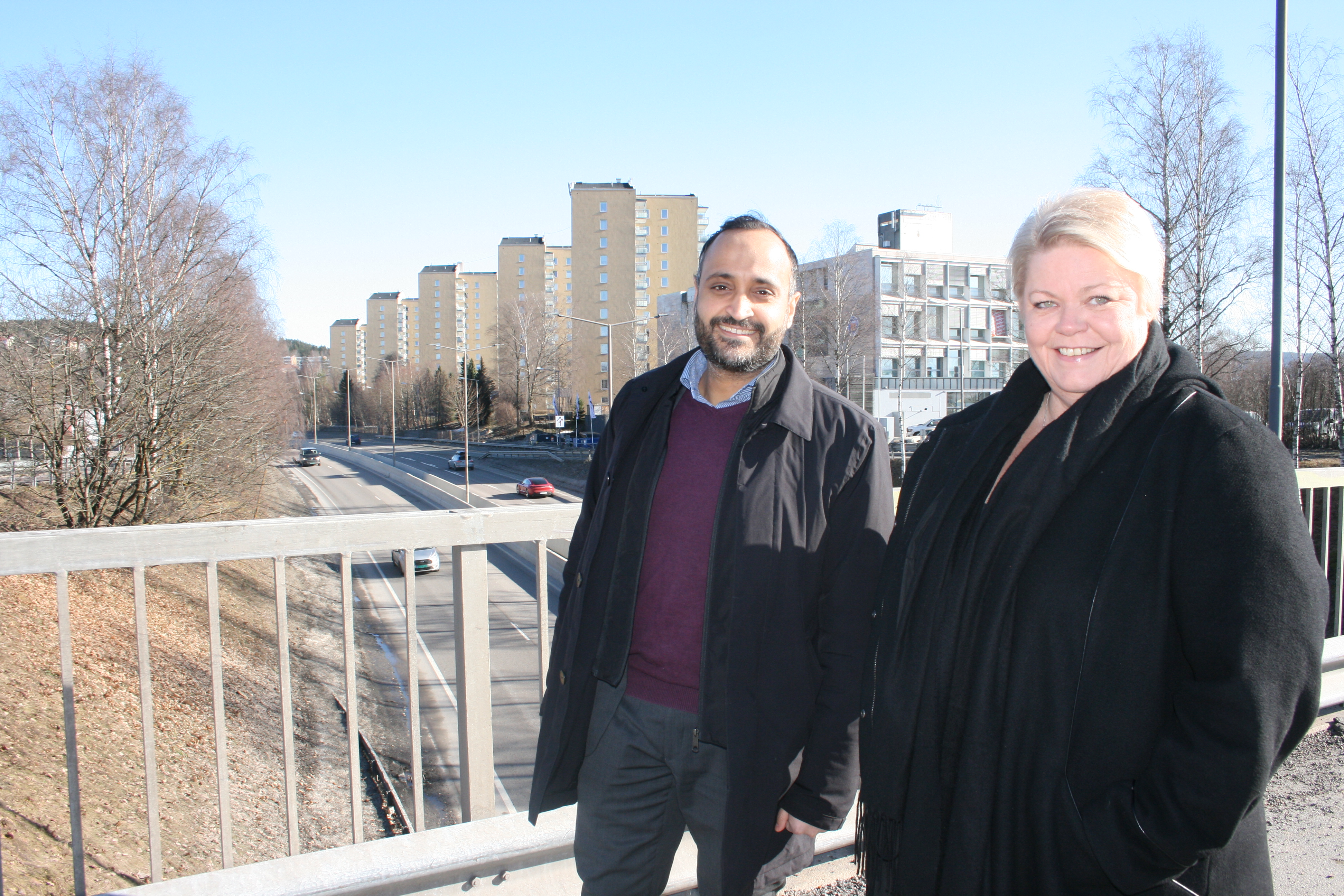 GLEDENS DAG: Abdullah Alsabeehg (Ap, t.v.) og Marthe Scharning Lund (Ap) fryder seg over utfallet av Oslopakke 3-forhandlingene.