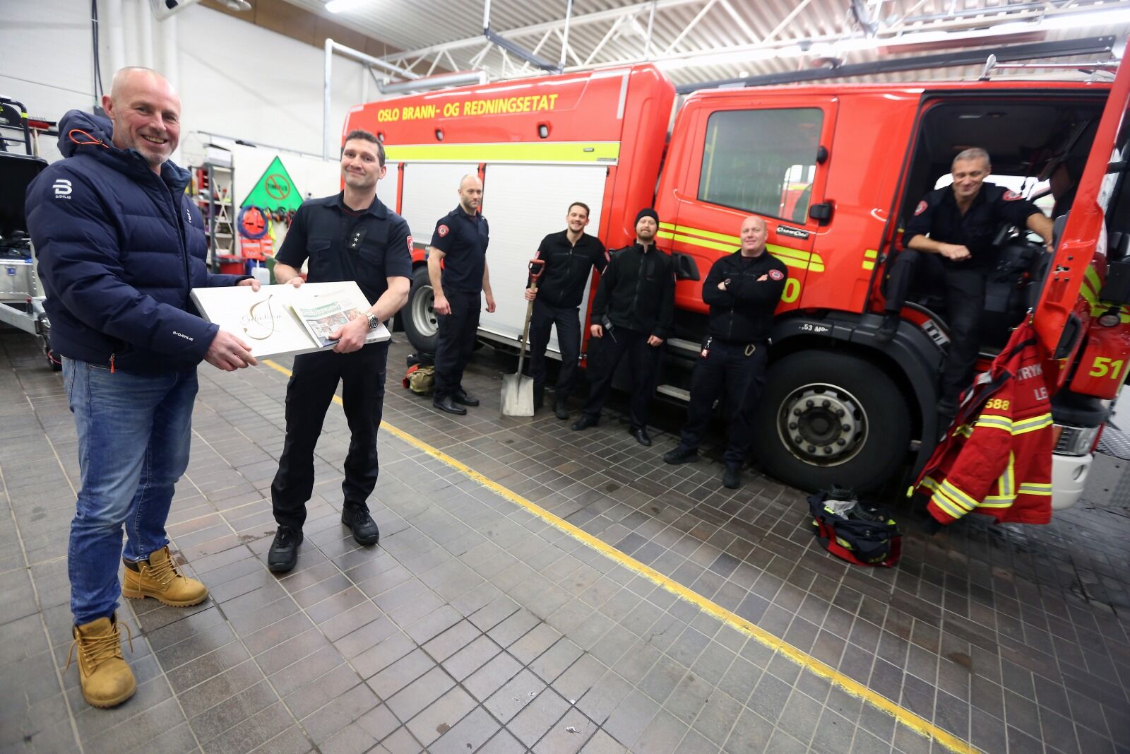 Tradisjonen tro tok Akers Avis Groruddalen en tur til Grorud brannstasjon på nyttårsaften – selvsagt med en skikkelig konfekt-eske armen!