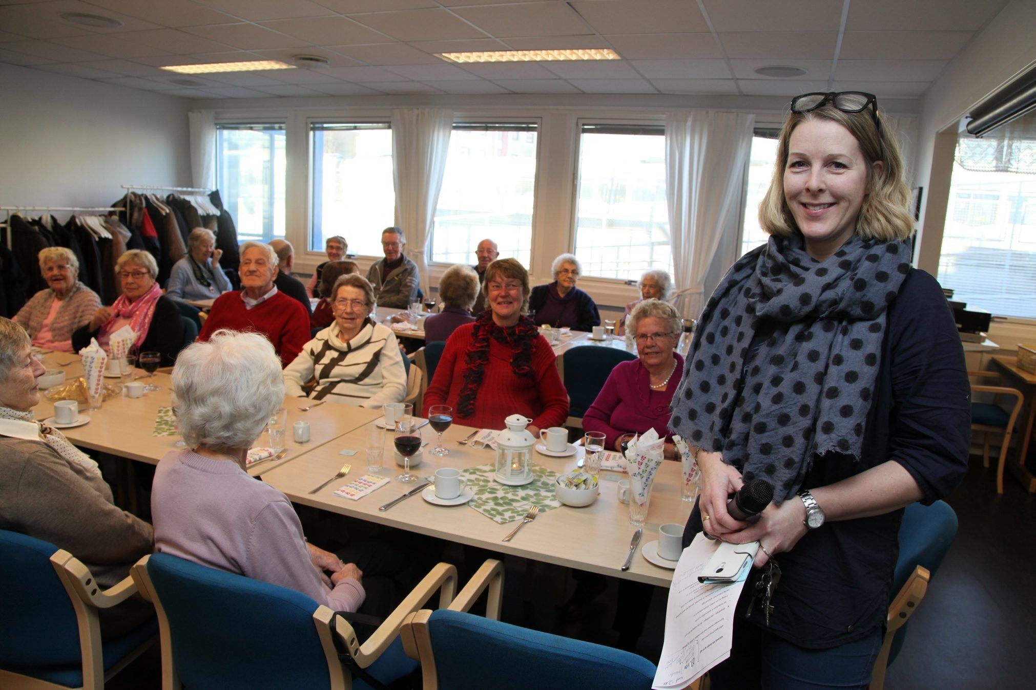 Det var nesten stinn brakke på det første hyggetreffet i nærmiljøsentret etter flyttingen. Aktivitør Berit Marie Saur forteller at innflyttingen har gått nesten uten problemer.