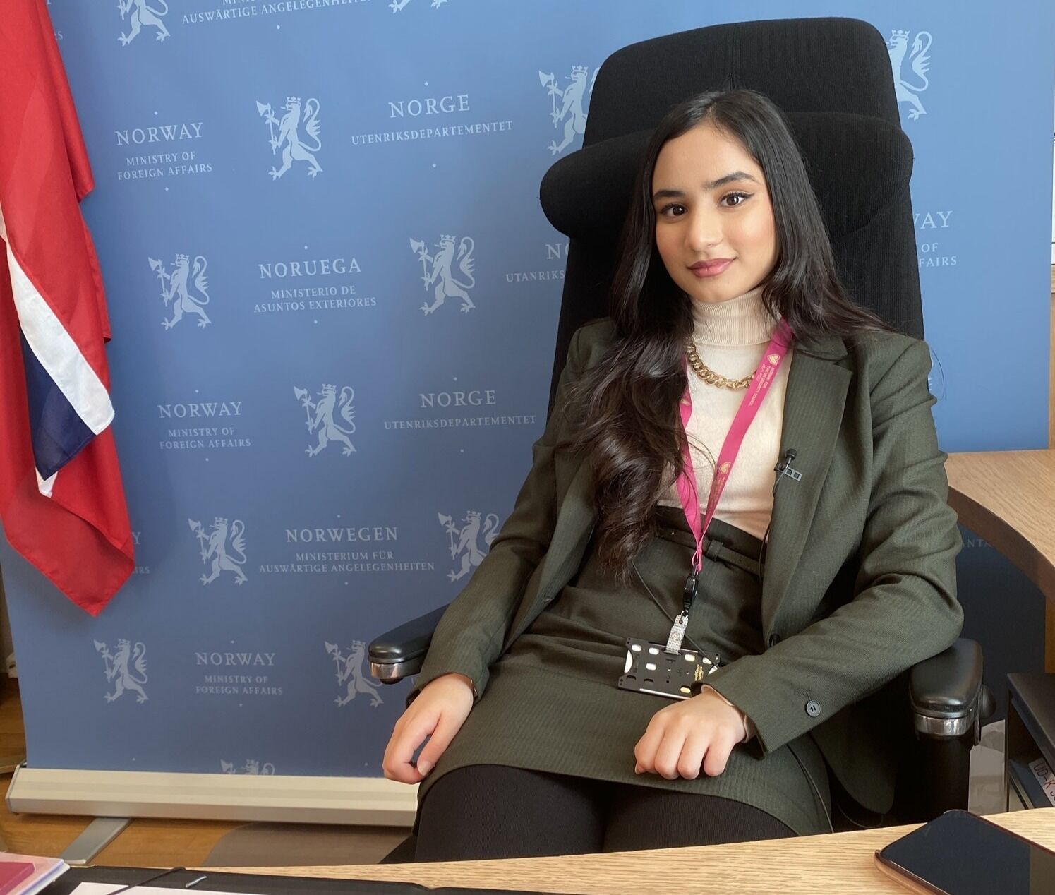 – Det har vært veldig lærerikt og spennende, men også hektisk. Jeg er fremdeles ung, så til å begynne med holder det å være utviklingsminister for en kun én dag, humrer Arina Aamir.