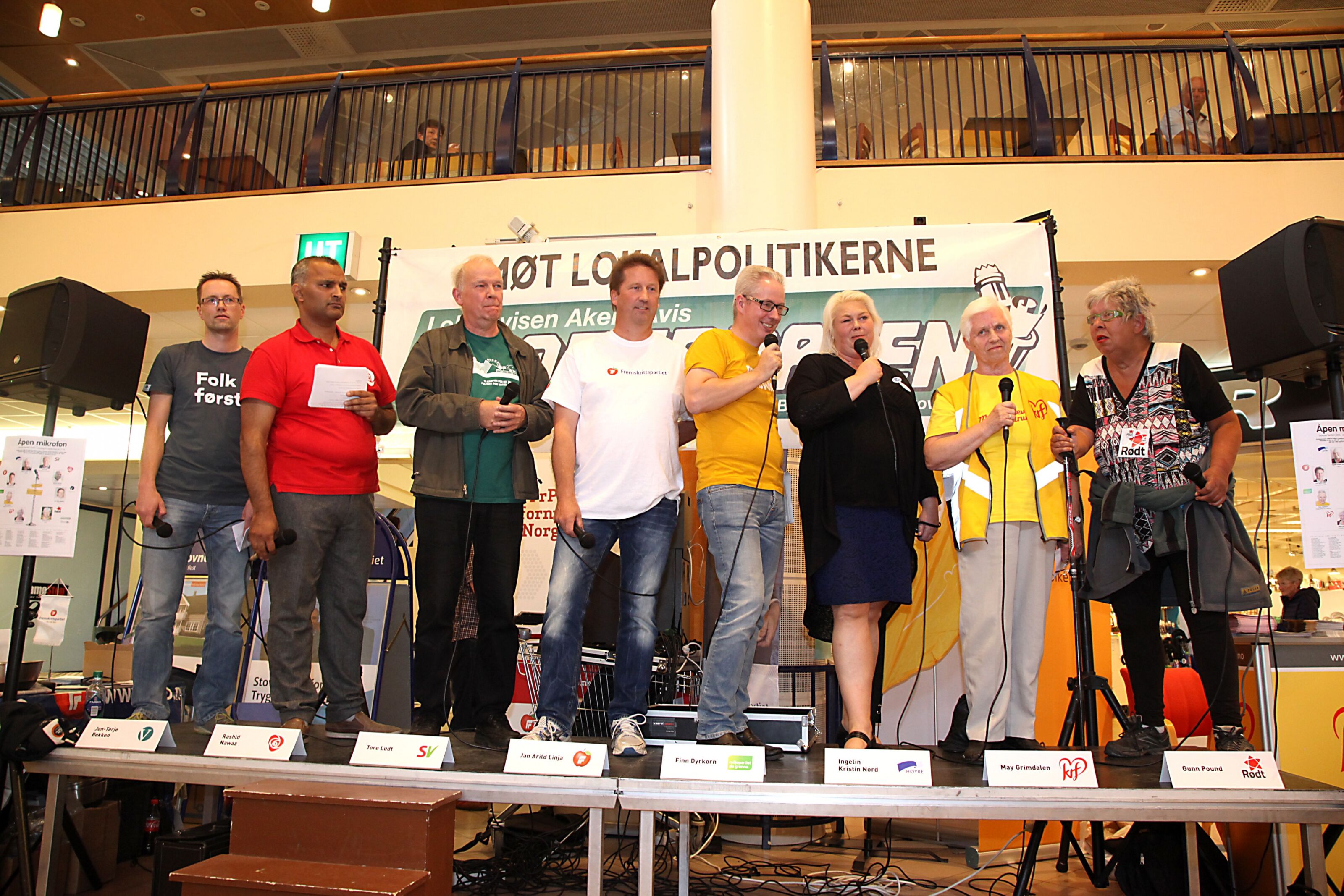 IKKE SAMSTEMTE: Stovner-partiene er ikke enig i hvordan man skal unngå å slå sammen ungdomstilbudene i bydelen. Fra venstre: Jon-Terje Bekken (V), Rashid Nawaz (Ap), Tore Ludt (SV), Jan Arild Linja (Frp), Finn Dyrkorn (MDG), Ingelin Kristin Nord (H), May Grimdalen (KrF) og Gunn Pound (R). Foto:Bilde 1 av 1