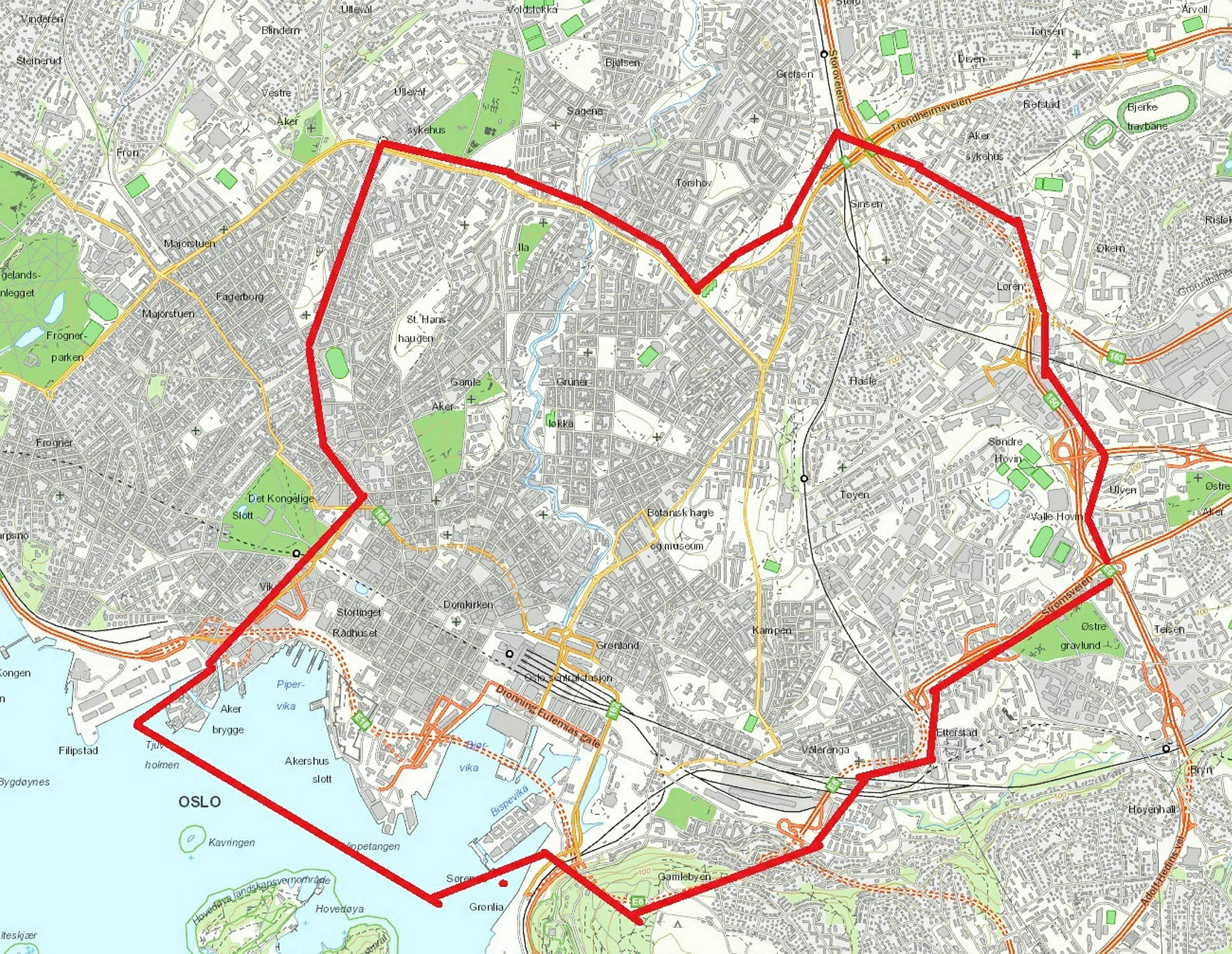 PRØVEORDNING: Innenfor det markerte området på Oslo-kartet. Foto: xBilde 1 av 1