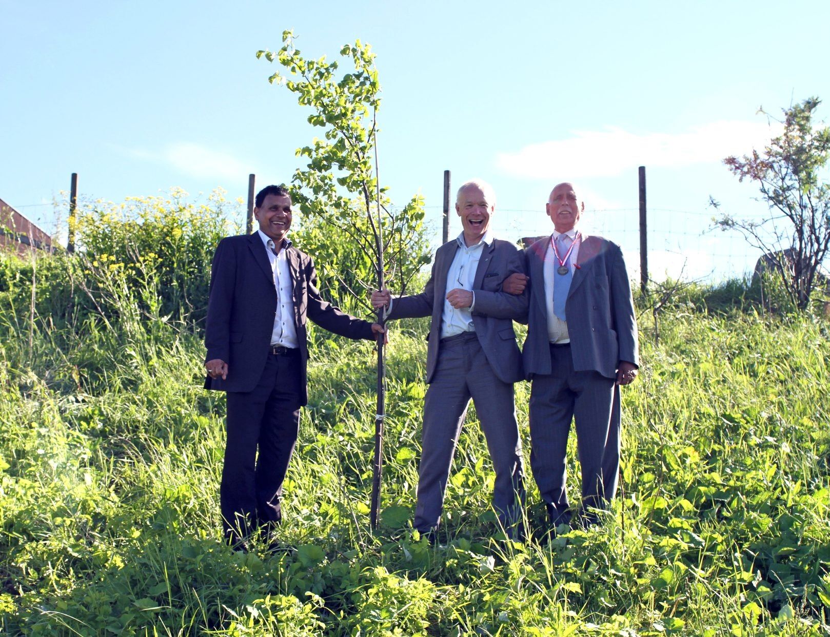Oslo Senterkvinner og Foreningen Vennskap nord-sør inviterte stortingspolitikeren til gården for tre år siden. Da ble det plantet tre trær; ett for frivillighetsarbeid, ett for Vennskap nord-sør og ett for ansvarlige politikere. Per Olaf Lundteigen fikk æren av å plante det sistnevnte, og viste seg å være en politiker som tålte å ha jord på fingrene.