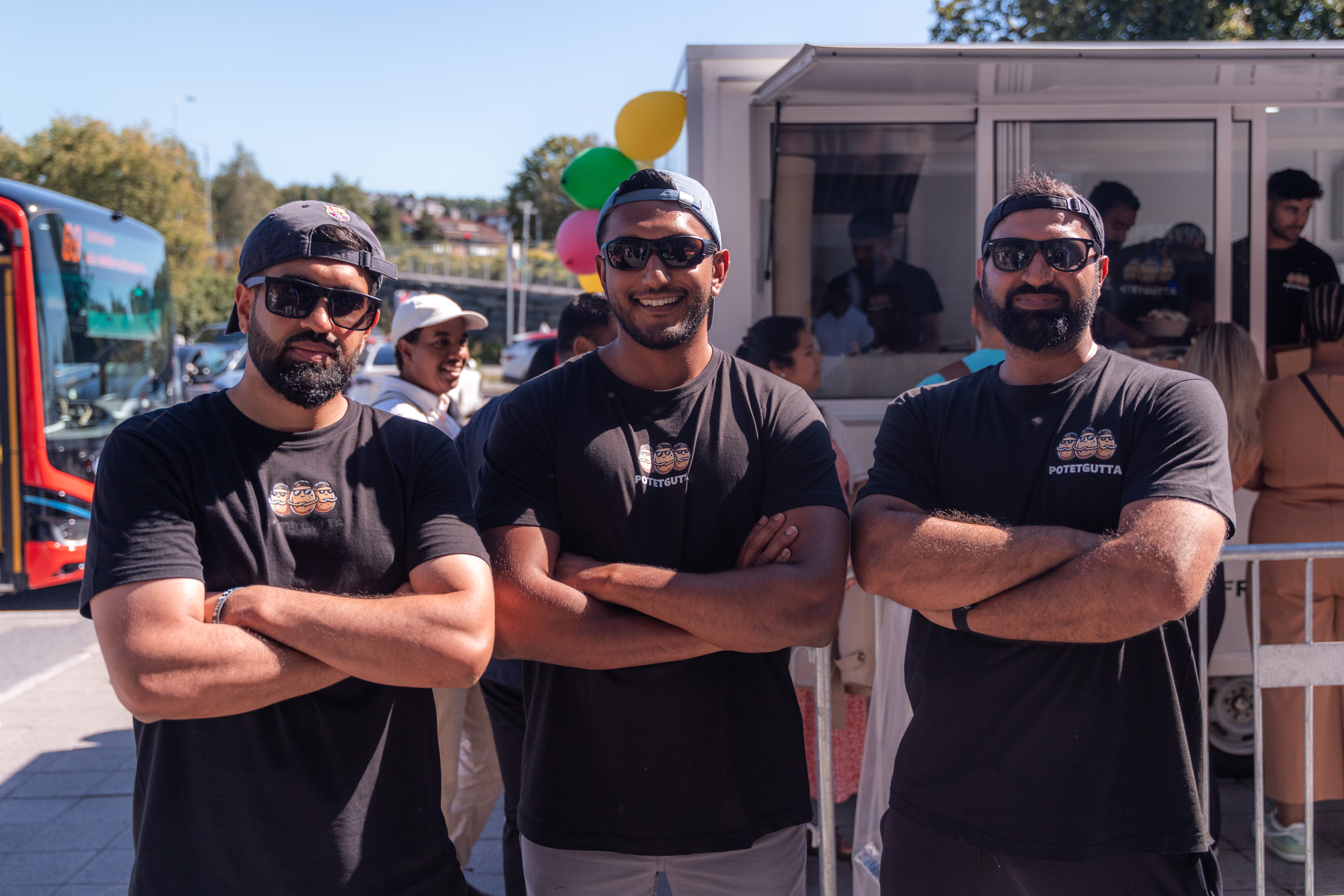 POTETGUTTA: Grunderne Zulqarnain Shahid Raja (f.v.), Kamalan Rashasingham og Muslim Bin Humayun står for Groruddalens nyeste matvogn-tilskudd. FOTO: Karan SinghBilde 1 av 6