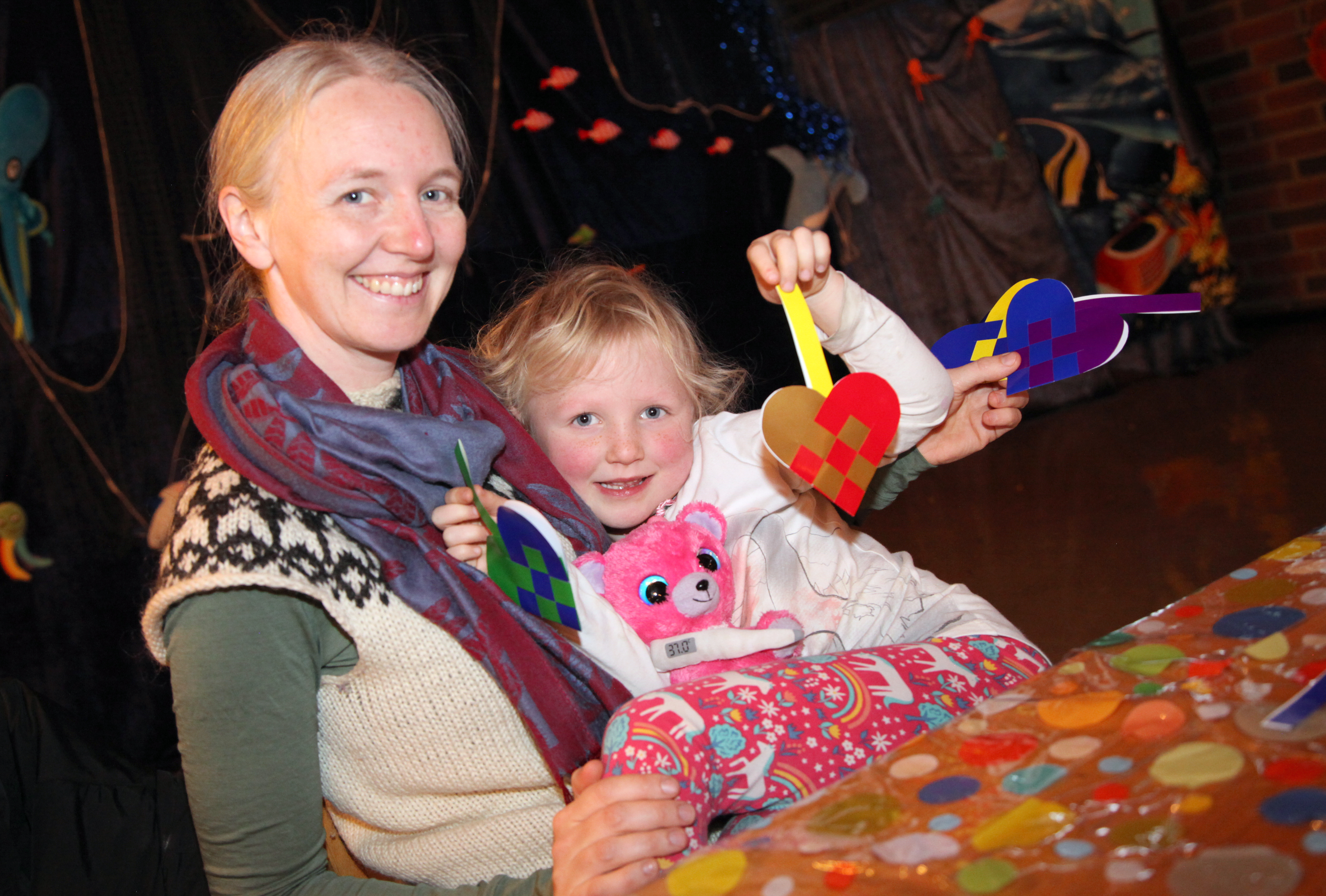 FORNØYD JENTE: Rannveig (6) holder godt rundt Kosi (2) og viser frem julekurven hun har laget sammen med mamma Karen Langsholt Holmqvist. FOTO: Rolf E. WulffBilde 1 av 7