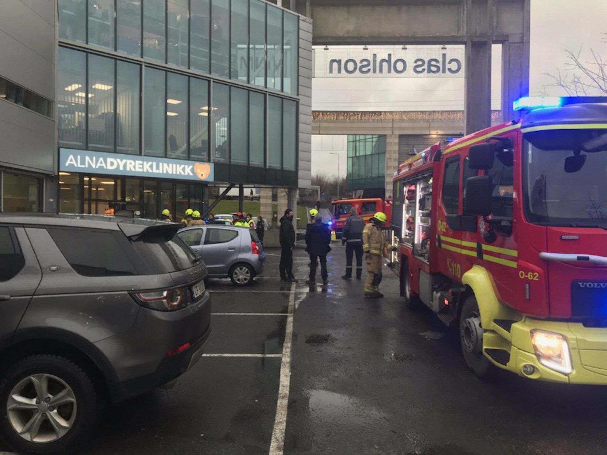 Rett før klokka 13 mandag formiddag rykket nødetatene ut til en dyreklinikk på Alna Senter.