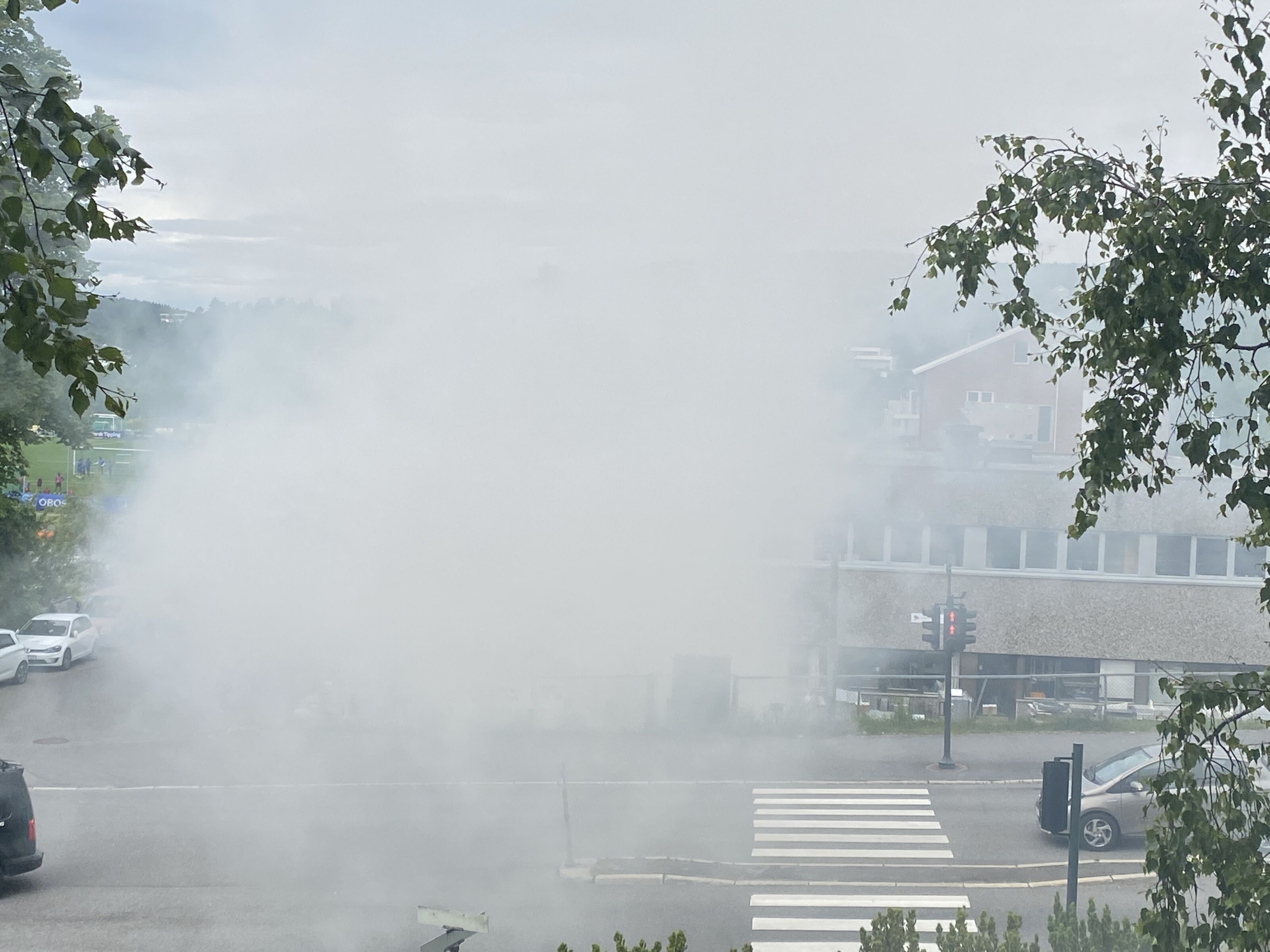 Kjørende på Trondheimsveien på Grorud like før klokka 11.30 tirsdag ble vi plutselig møtt av en vegg av røyk. Heldigvis viste det seg å være langt mindre dramatisk enn røyken tilsa.