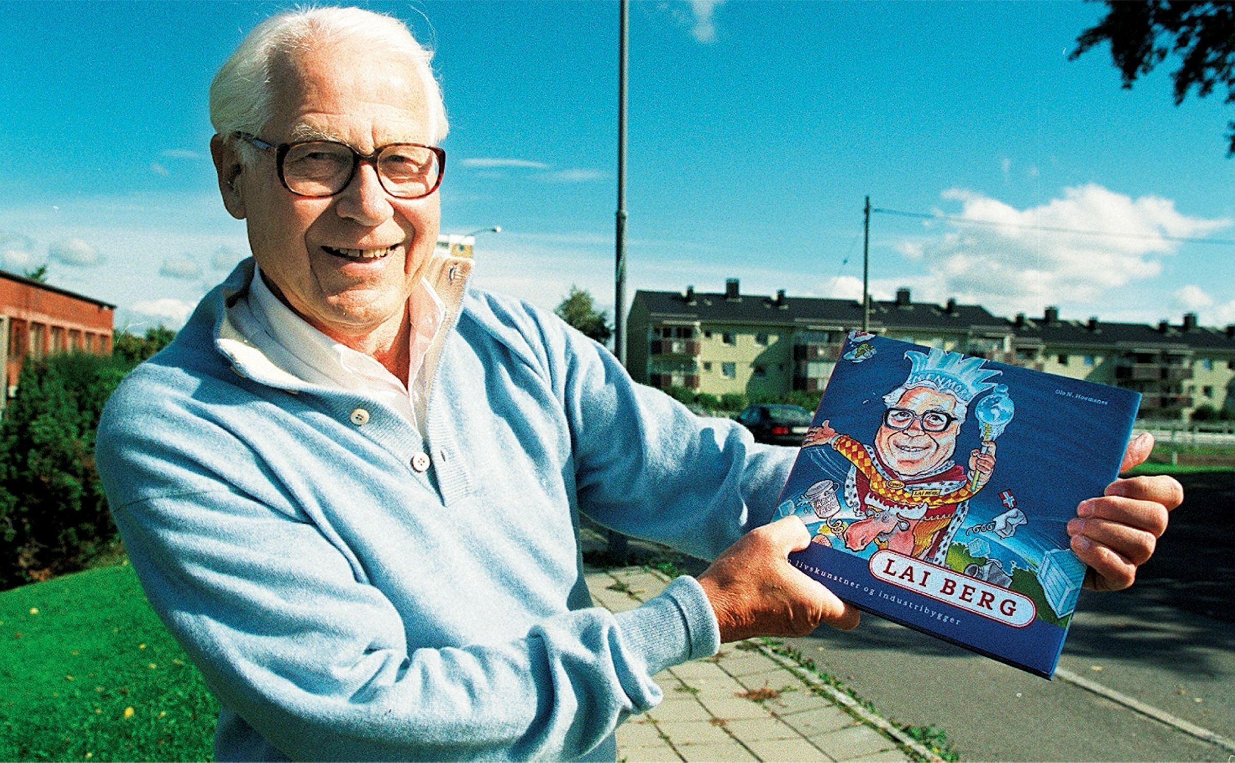 Lai Berg har gått bort, 97 år gammel. Slik husker vi ham. Her fotografert i 2003 i forbindelse med 50-årsjubileum for hans virksomhet. I bakken nedenfor holdt han i mange år til med sitt norske konsernkontor. Foto: Akers Avis GroruddalenBilde 1 av 1