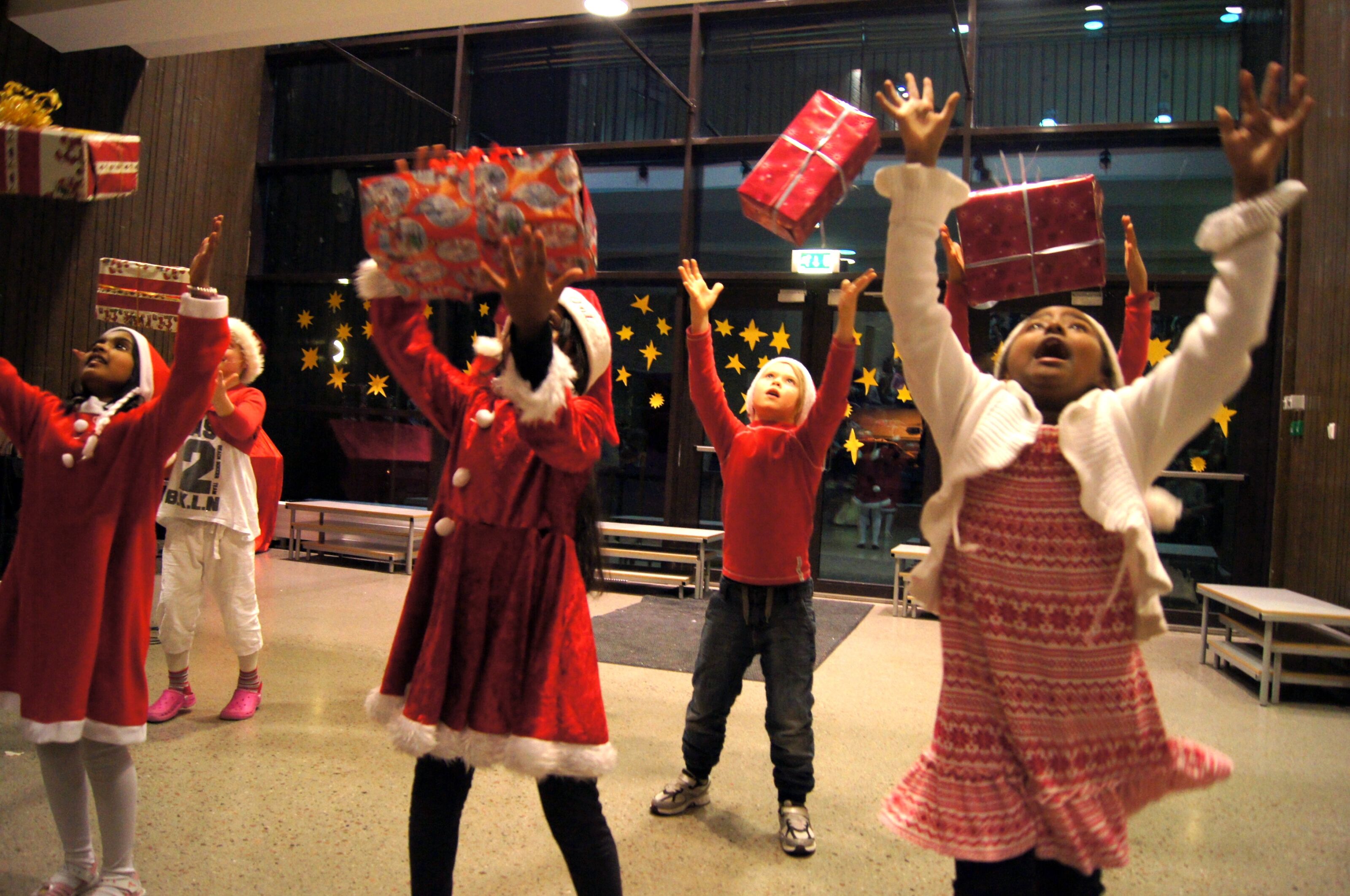Barna fra Høybråten aktivitetsskole fikk hele salen til å le og klappe da de fremførte sitt juleskuespill, skrevet av de to ansatte Liselotte Bouten og Elin Flo Lauvik.