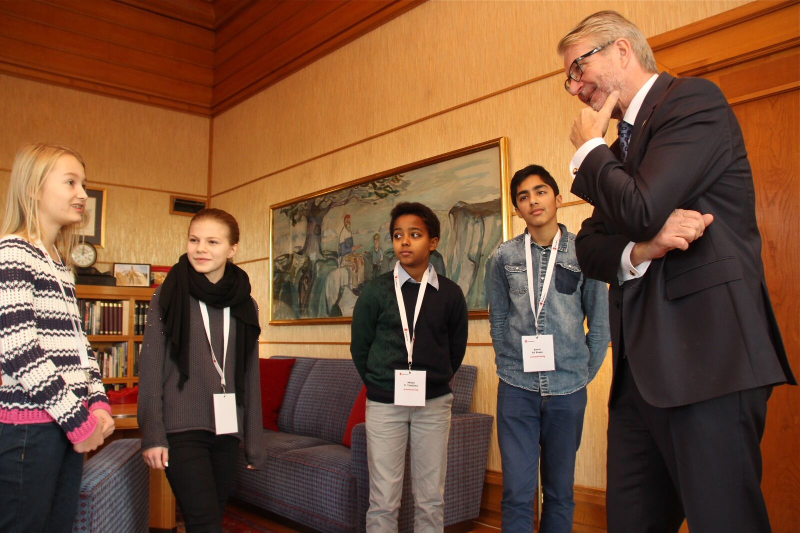 FESTARRANGØRER: Jil fra Sagene, Guro, Molad og Samir fra Lindeberg skole er blant de tolv elevene som skal arrangere fredsprisfesten. Her forbereder de seg med noen gode råd fra ordfører Fabian Stang. Foto:Bilde 1 av 1 Skal lage fest for Malala Kenneth Fossheim Publisert 9. des 14 kl. 09:41 Del på sosiale medier Del Facebook Twitter E-post Abonnement