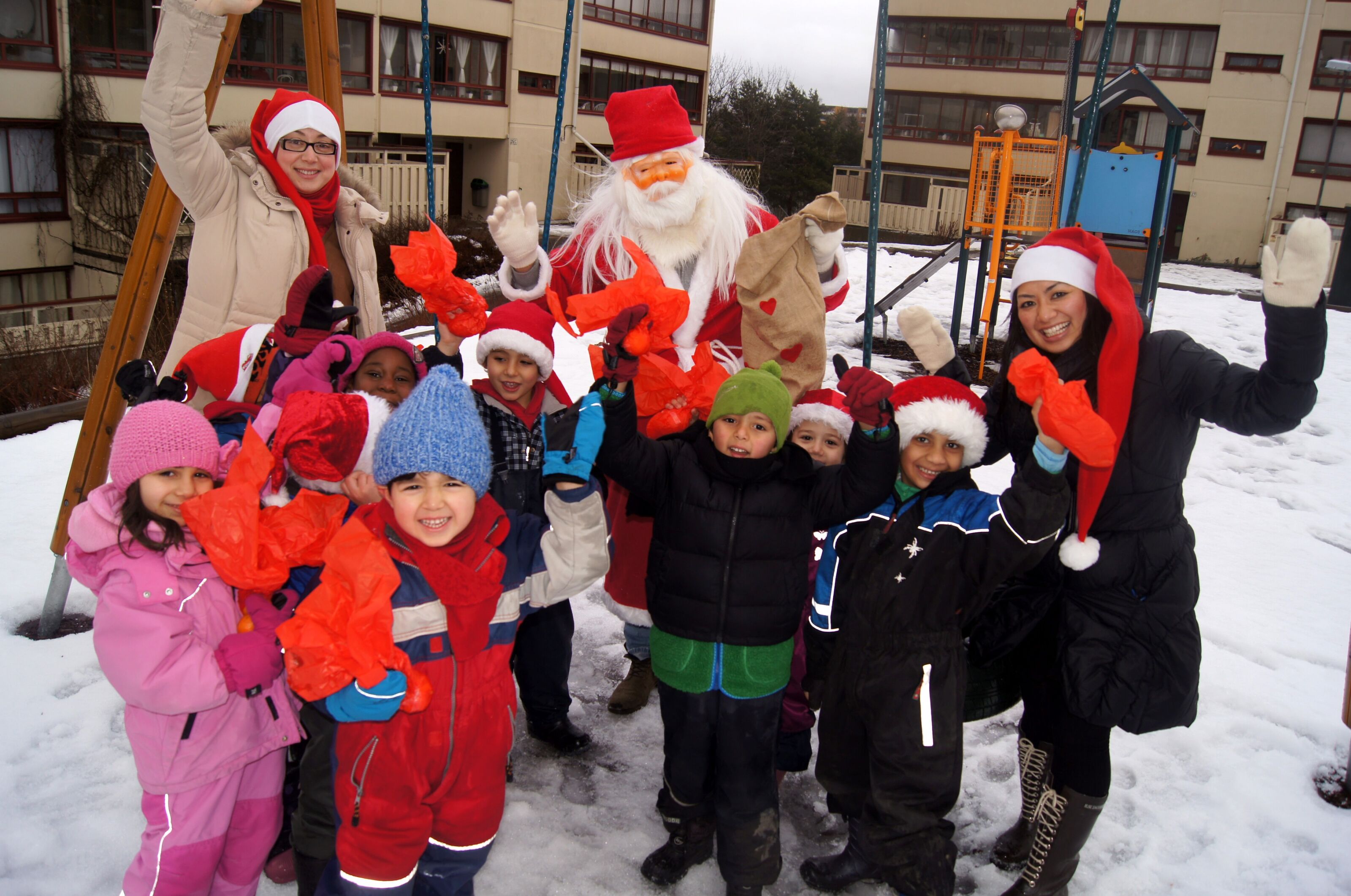 Flere av barna i Skjønnhaug barnehage har aldri feiret jul før. Når de hadde nissefest, var de ute på glattisen for å lete etter julenissen som har gjort rampestreker hele desember.