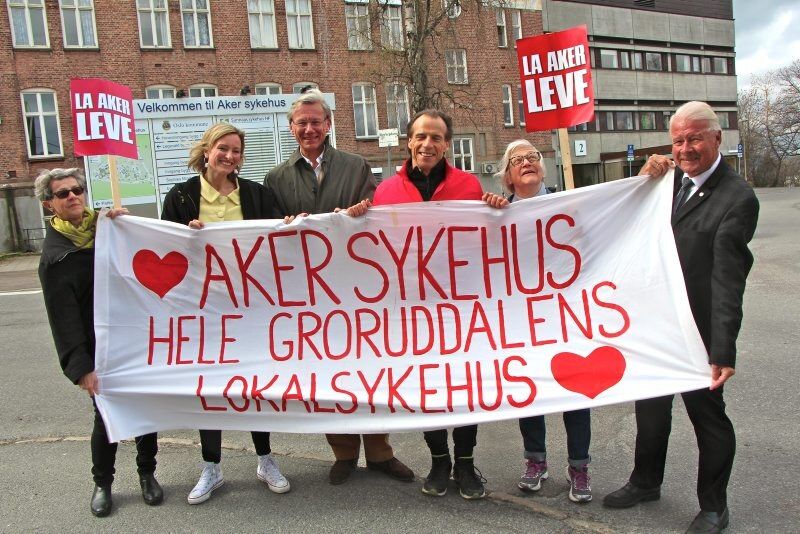 SAMLES FORAN AKER: Maren Rismyhr i Aker sykehus venner, helsebyråd Inga Marte Thorkildsen (SV), bystyrerepresentant James Stove Lorentzen (H), Jan Bøhler (Ap), Aker sykehus venner, og Carl I. Hagen (Frp) er alle enige om én ting: Aker må gjenåpnes som lokalsykehus med storbylegevakt. Nå venter de på Helse Sør-Øst sin uttalelse. Foto:Bilde 1 av 3