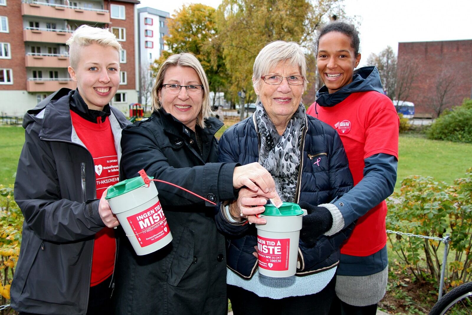 Else Pedersen og datteren Trine Nilsen måtte ikke tenke seg om to ganger da bøssebærerne Annie Jalloh og Tuva Mauseth banket på døra under søndagens tv-aksjon.