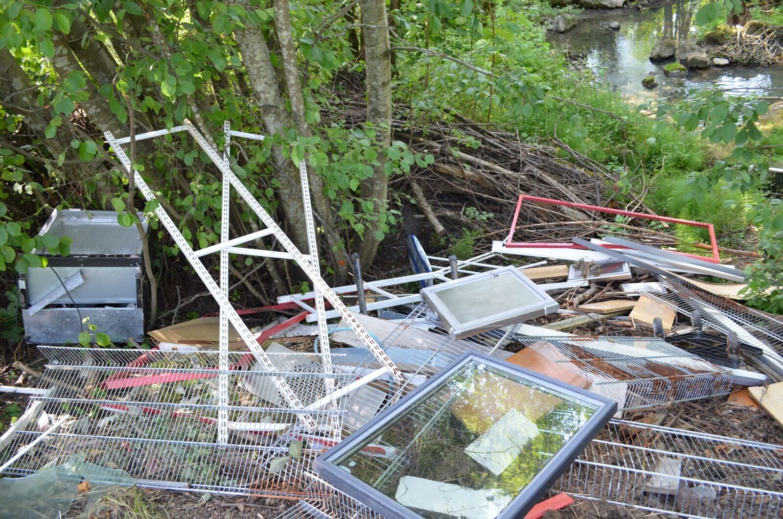 Søppel tømt langs elva