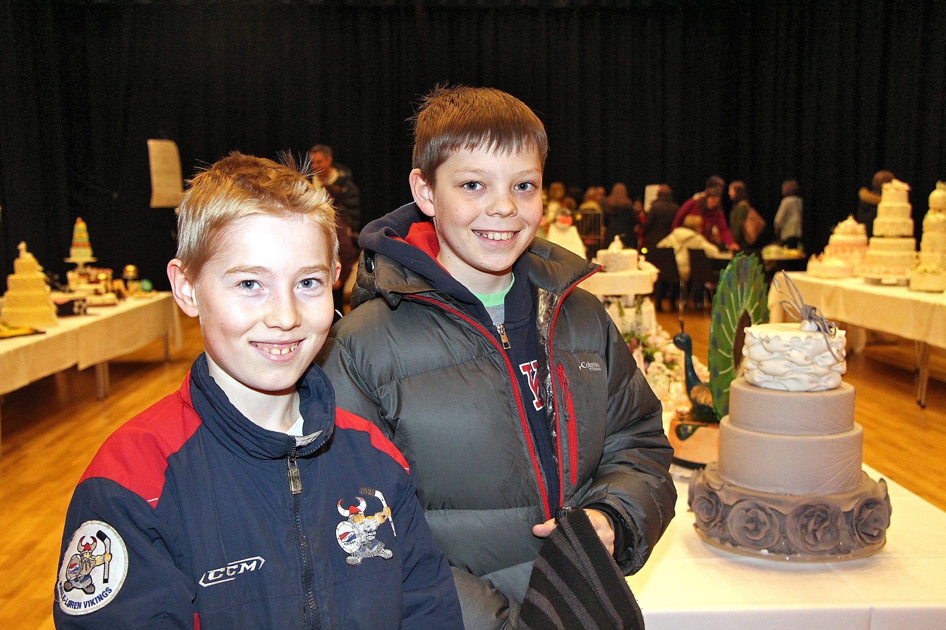 11-åringene Oliver og Sebastian ble mektig imponert over alle de flotte kakene som var utstilt på Kakeakademiets utstilling på Rommen scene.