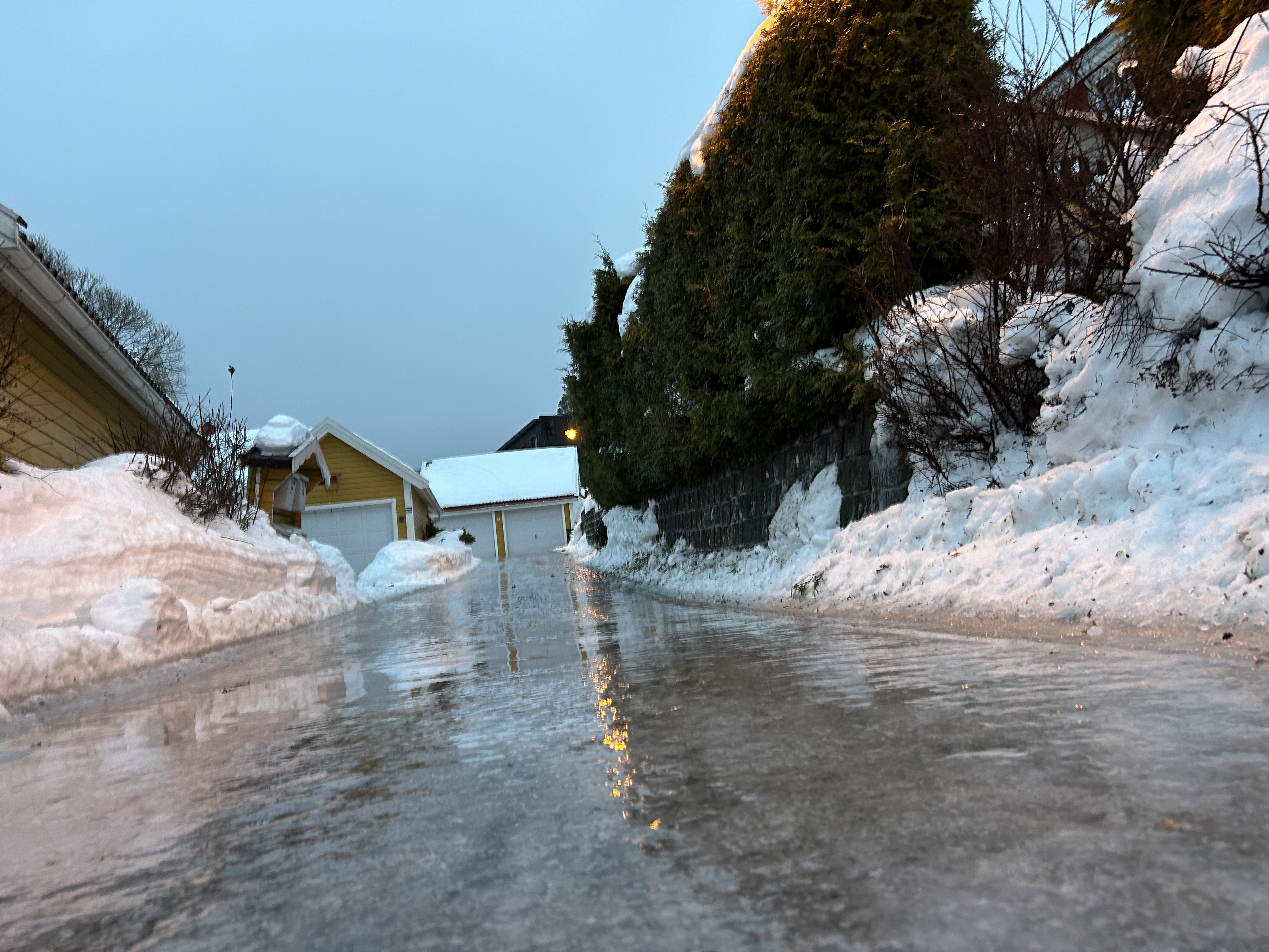 Skal du bevege deg for egen maskin, er det i dag en stor fordel å svelge stoltheten og få på deg brodder. For fortauene som forrige uke var dekket av et kompakt snølag har nå blitt forvandlet til skøytebaner. Brøytekantene smelter også raskt i plussgradene gjennom mandagen, og gjør isen enda glattere.