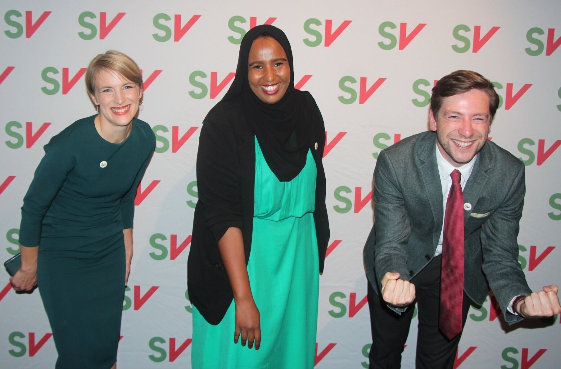 PLANEN KLAR: SV skal vise seg verdig groruddølers tillit, lover Kari Eliabeth Kaski (t.v.). Ungdommer i sommerjobb i Groruddalen har inspirert henne. Men en statsrådpost vil hun ikke bruke tid på å kommentere. Her med andrekandidat Marian Hussein fra Stovner SV og Andreas Sjalg Unneland fra Grünerløkka SV. Foto:Bilde 1 av 2