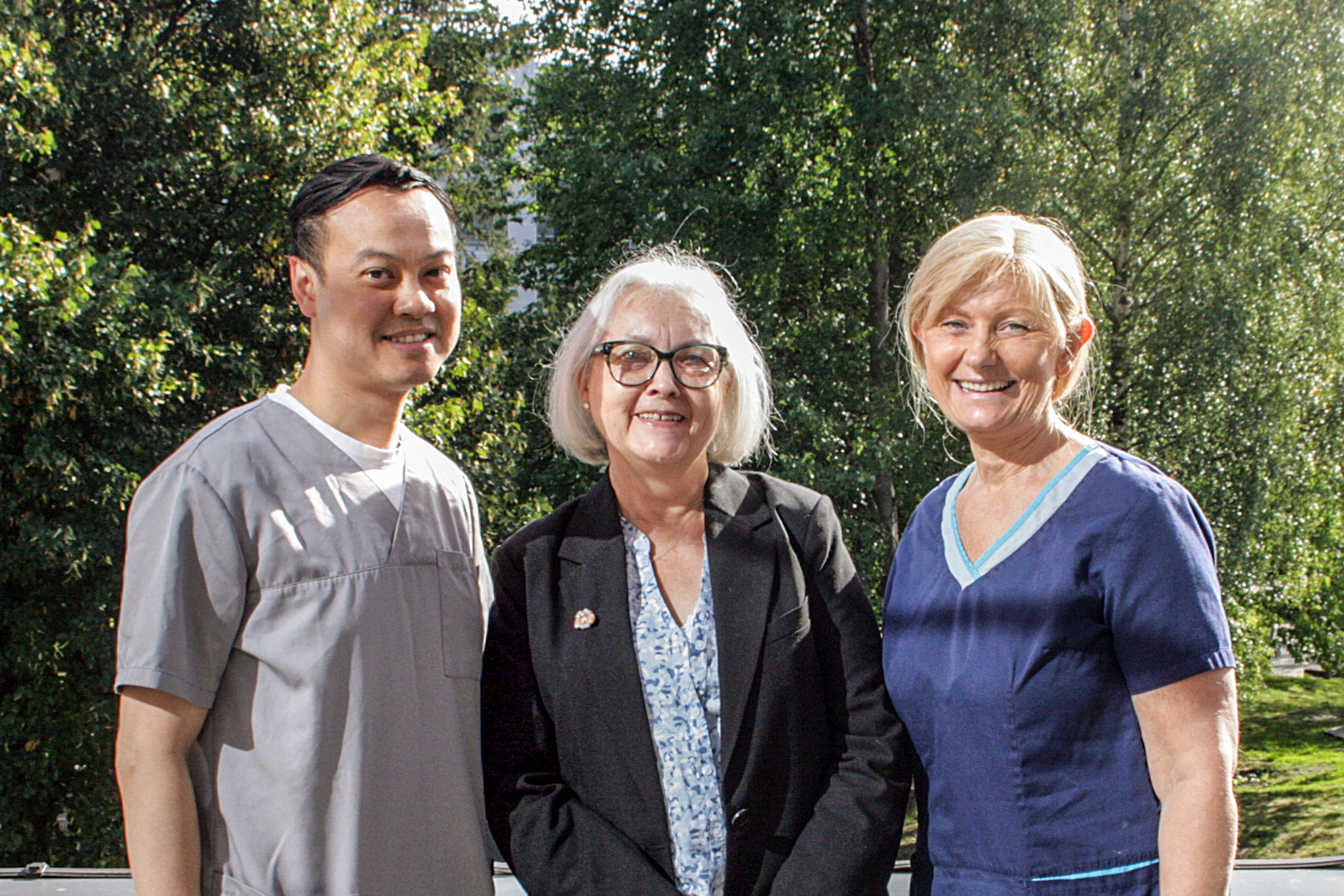BREDERE TEAM: Hos Trygg Helse på Furuset har de i to måneder hatt en egen sykepleier på jobb. Dermed kan lege Huy Do-Vu (t.v.) og sykepleier Ingunn Lie Løfaldli (t.h.) ta enda bedre vare på pasienter som Tordis Døvre Paasche.Bilde 1 av 3
