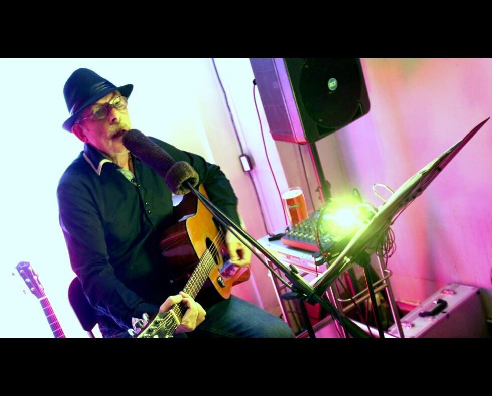 MINDRE REDD: To ganger har Bjørn Engh nå ruslet noen skritt fra sin helse- og velværeforretning Triangelklinikken på Grorud senter, og fram til puben Anexet for å underholde. Han lider egentlig av sceneskrekk, men opptrednene har vært så vellykket at han nå ikke er like redd som tidligere. Foto:Bilde 1 av 1