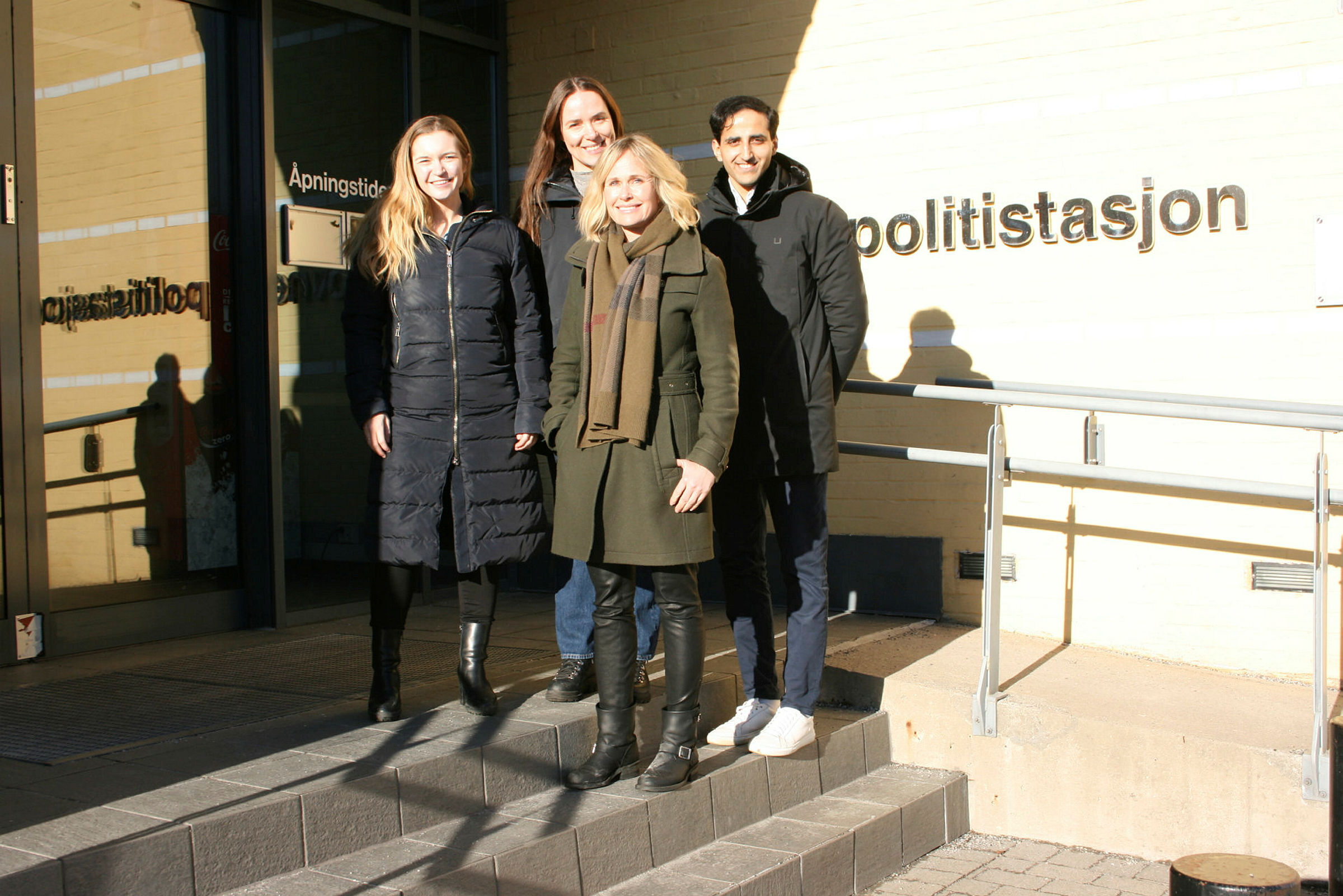 MÅ TA ANSVAR MOT KRIMINALITET: Mathilde Tybring-Gjedde (H, f.v.), Ingeborg Tennes (H), Anne Lindboe (H) og Hassan Nawaz (H) møtte Stovner-politiet. De er enige med politiet om at det aller viktigste grepet mot kriminalitet er tidlig forebygging i lokalmiljøet. Foto: Caroline HammerBilde 1 av 1