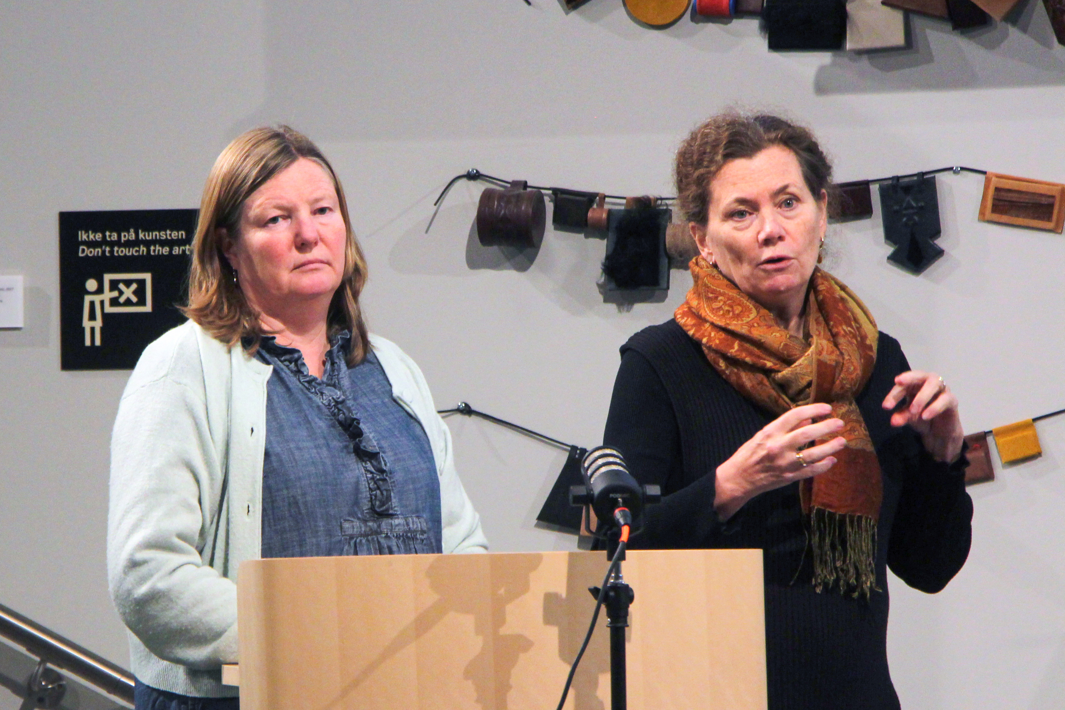 ORIENTERTE: Cathrine Juul (t.v.) i Utdanningsetaten og Eli Tufto i Oslobygg la fram en statusrapport for det store skoleprosjektet på Haugerud.