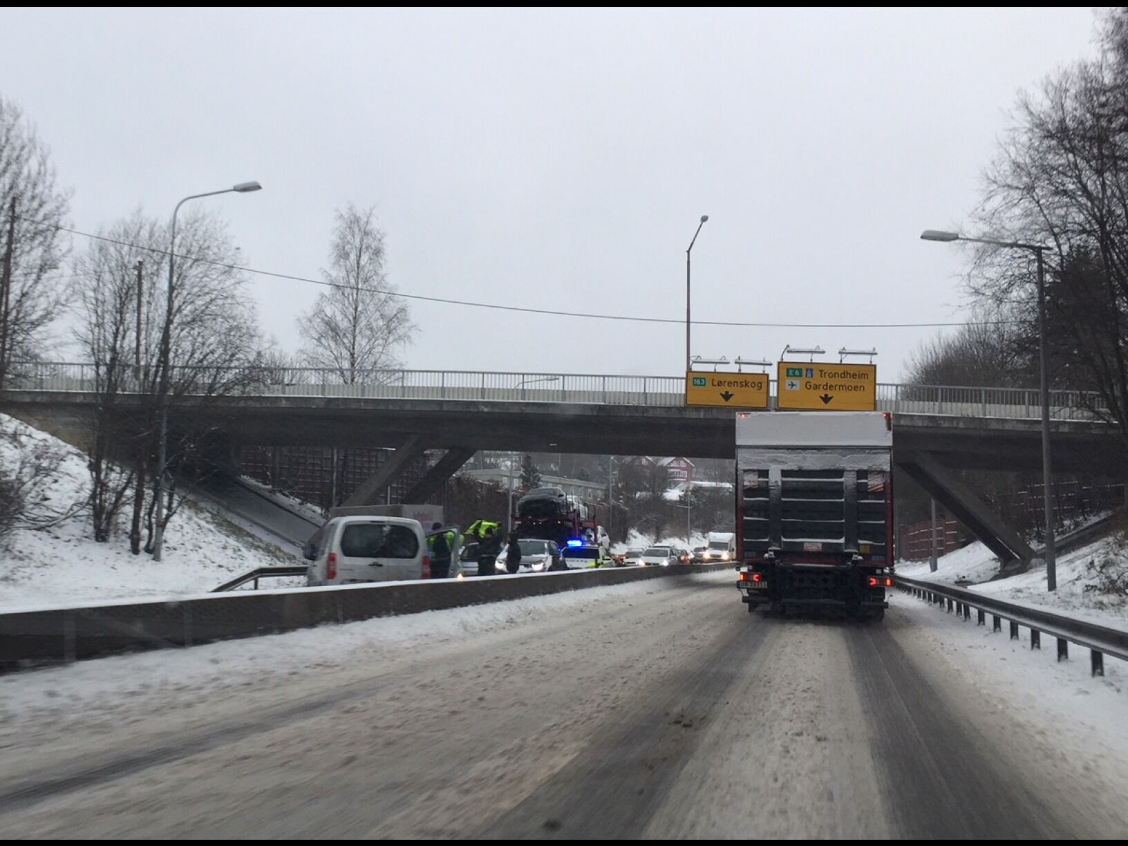 I morgentimene meldte politiet om en trafikkulykke på Østre Aker vei, nær avkjøringen mot Stovner. Ifølge politiet dreide det seg om en bil som snurret på det glatte underlaget. Til alt hell er det ikke meldt om noen personskader, og operasjonssentralen regner med at trafikken snart skal gå som normalt igjen.